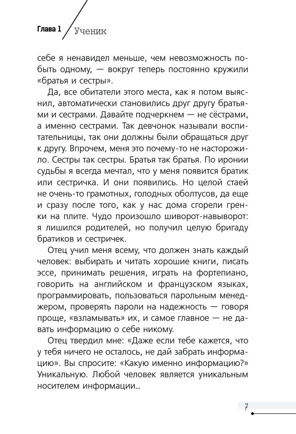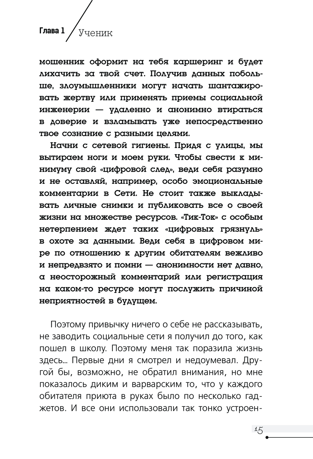 Эта книга состоит из двух частей: художественной, где рассказывается удивительная история мальчика, захотевшего стать белым хакером (хотя в ней, конечно же, есть и девочка, а также его друзья), и научно-популярной, в которой дается обучение (она так и называется в книге, ты увидишь ее, когда начнешь читать) программированию и разным другим компьютерным вещам, очень нужным в современном мире. Но на самом деле это единая история, позволяющая задуматься о добре и зле, не ошибиться в выборе правильной стороны и помогающая освоить способы защиты себя в бескрайнем мире интернета.