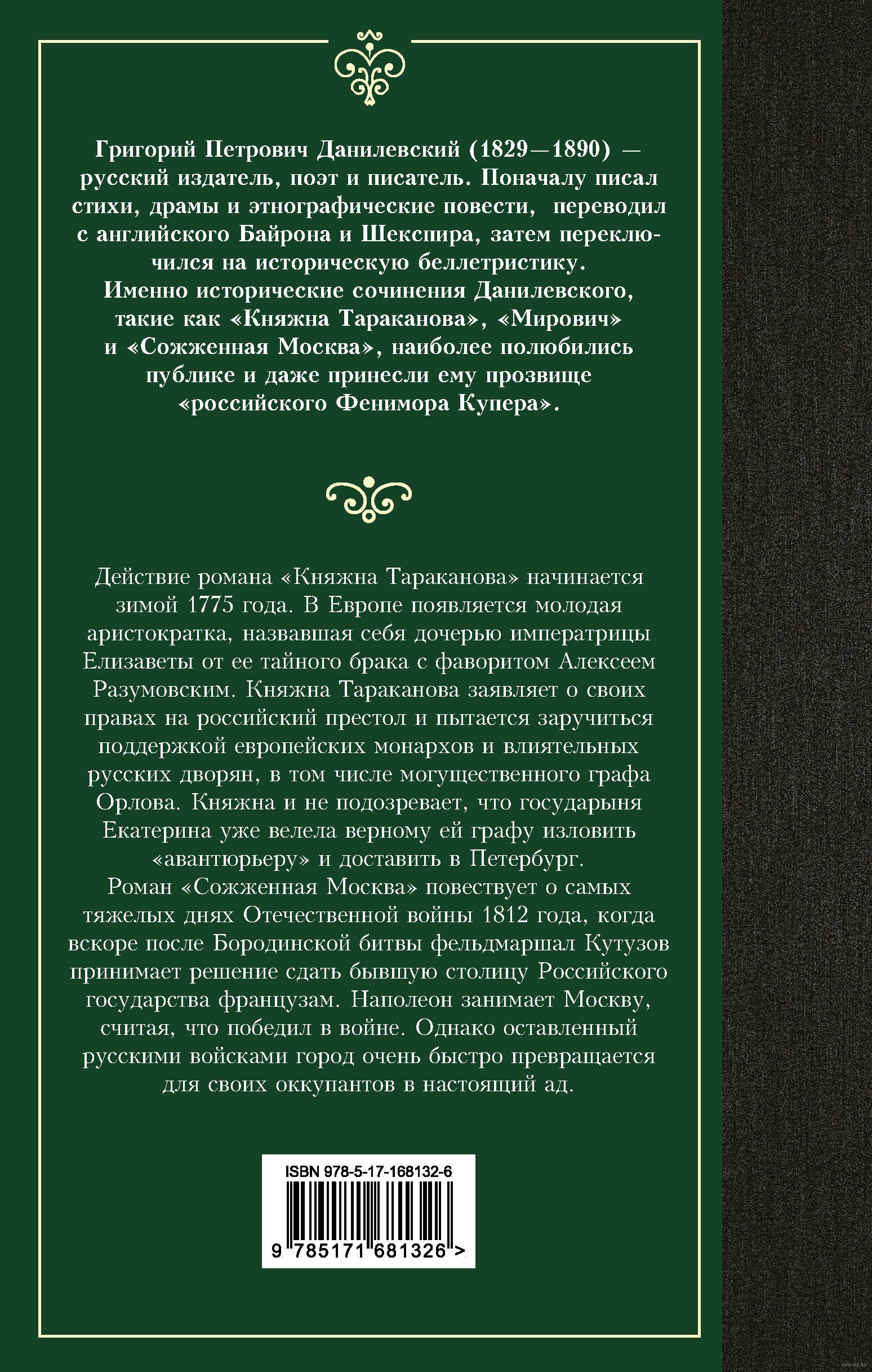 Роман "Сожженная Москва" повествует о самых тяжелых днях Отечественной войны 1812 года, когда вскоре после Бородинской битвы фельдмаршал Кутузов принимает решение сдать бывшую столицу Российского государства французам. Наполеон занимает Москву, считая, что победил в войне. Однако оставленный русскими войсками город очень быстро превращается для своих оккупантов в настоящий ад.