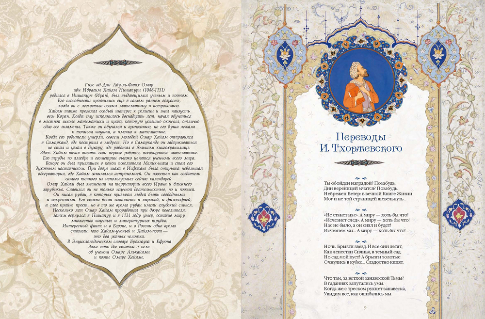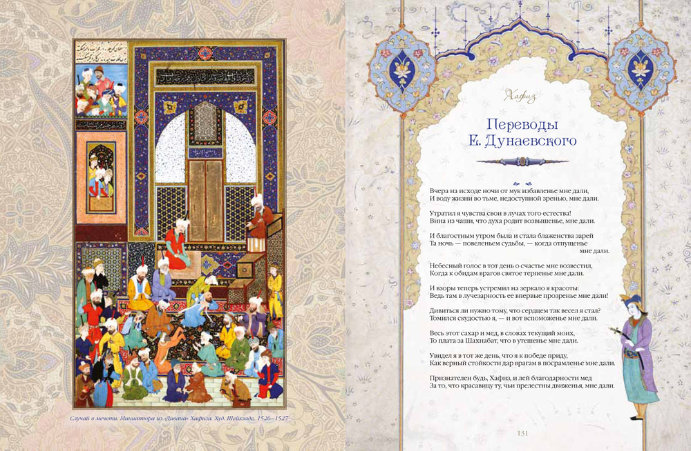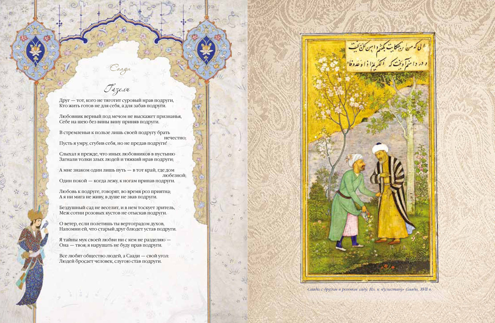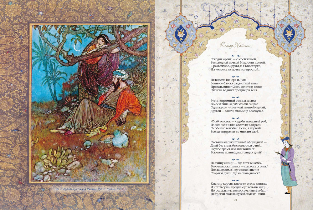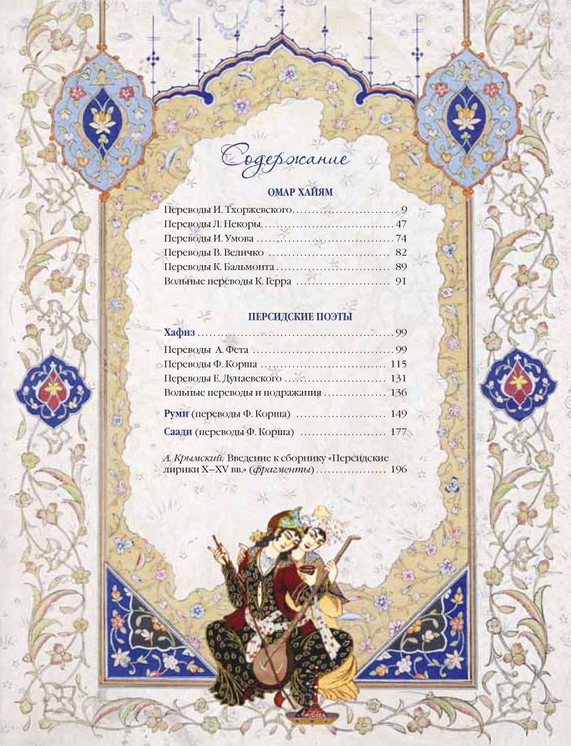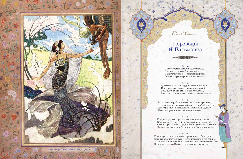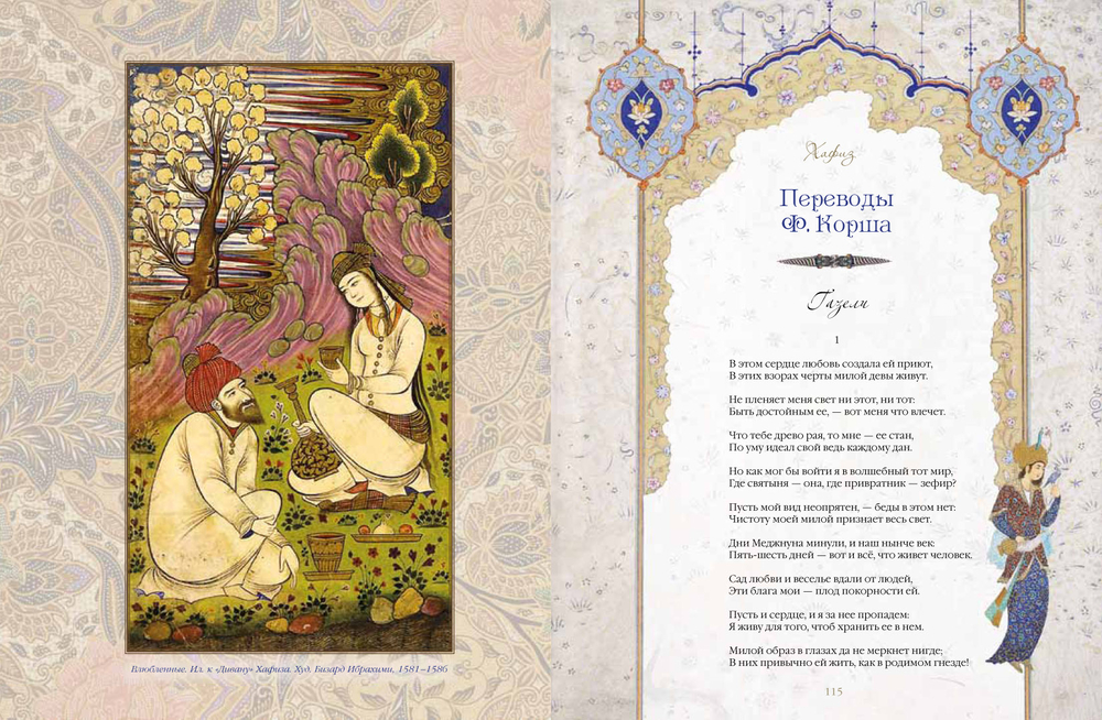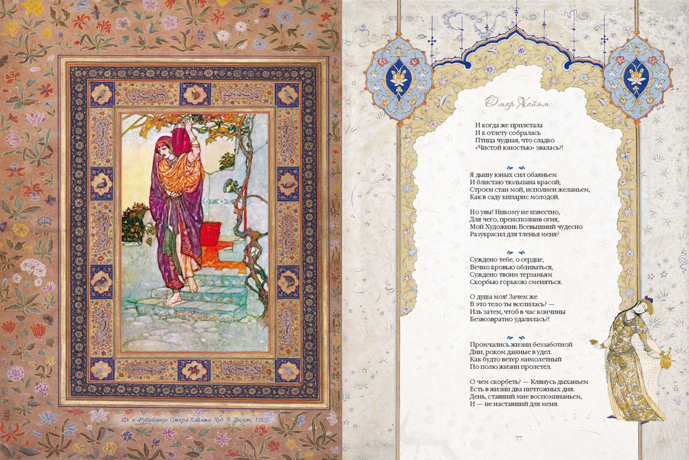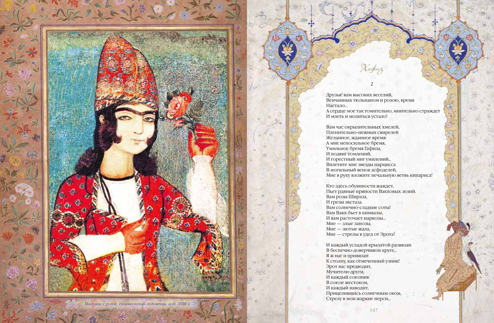 Перед вами лучшие образцы персидской поэзии, украшенные великолепными произведениями восточной живописи и работами европейских иллюстраторов.