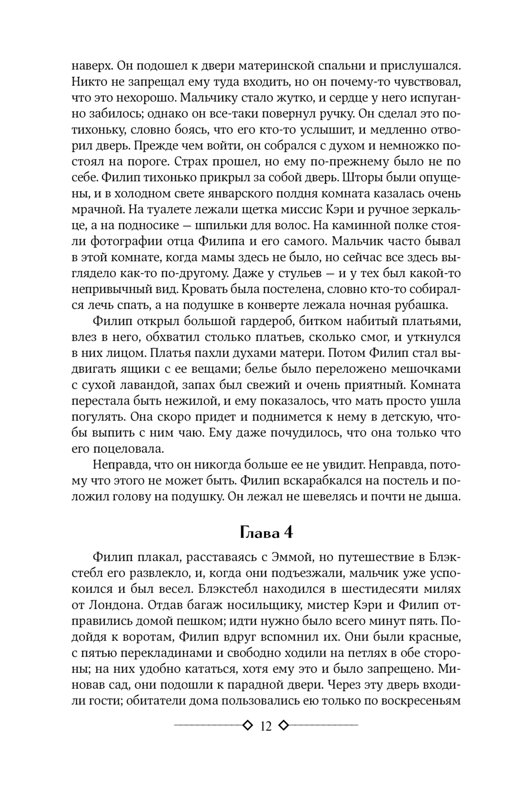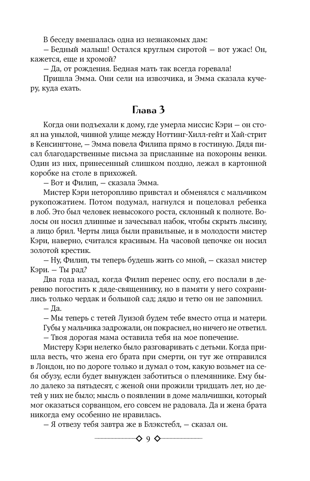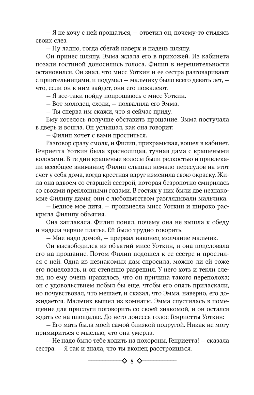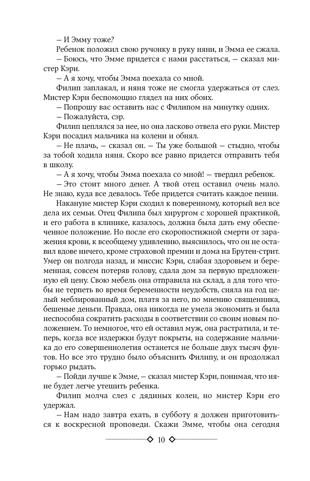 "Бремя страстей человеческих" можно назвать "романом воспитания", где автор прослеживает жизнь главного героя Филипа Кэри от детства к отрочеству, от юности к зрелости. На его долю выпадает немало испытаний: ранняя смерть родителей, отчаянные поиски своего призвания, обреченные отношения с легкомысленной женщиной. Претерпев немало разочарований, меняя свои взгляды от подчинения собственным страстям до самоотречения, Филип пытается нить за нитью сплести узор собственной жизни...