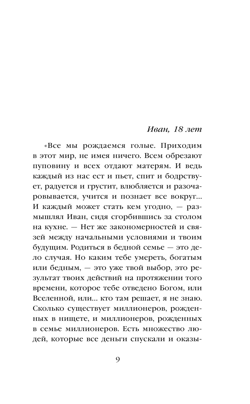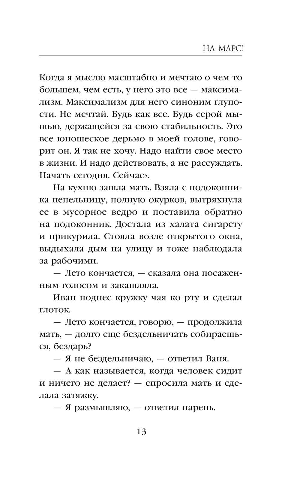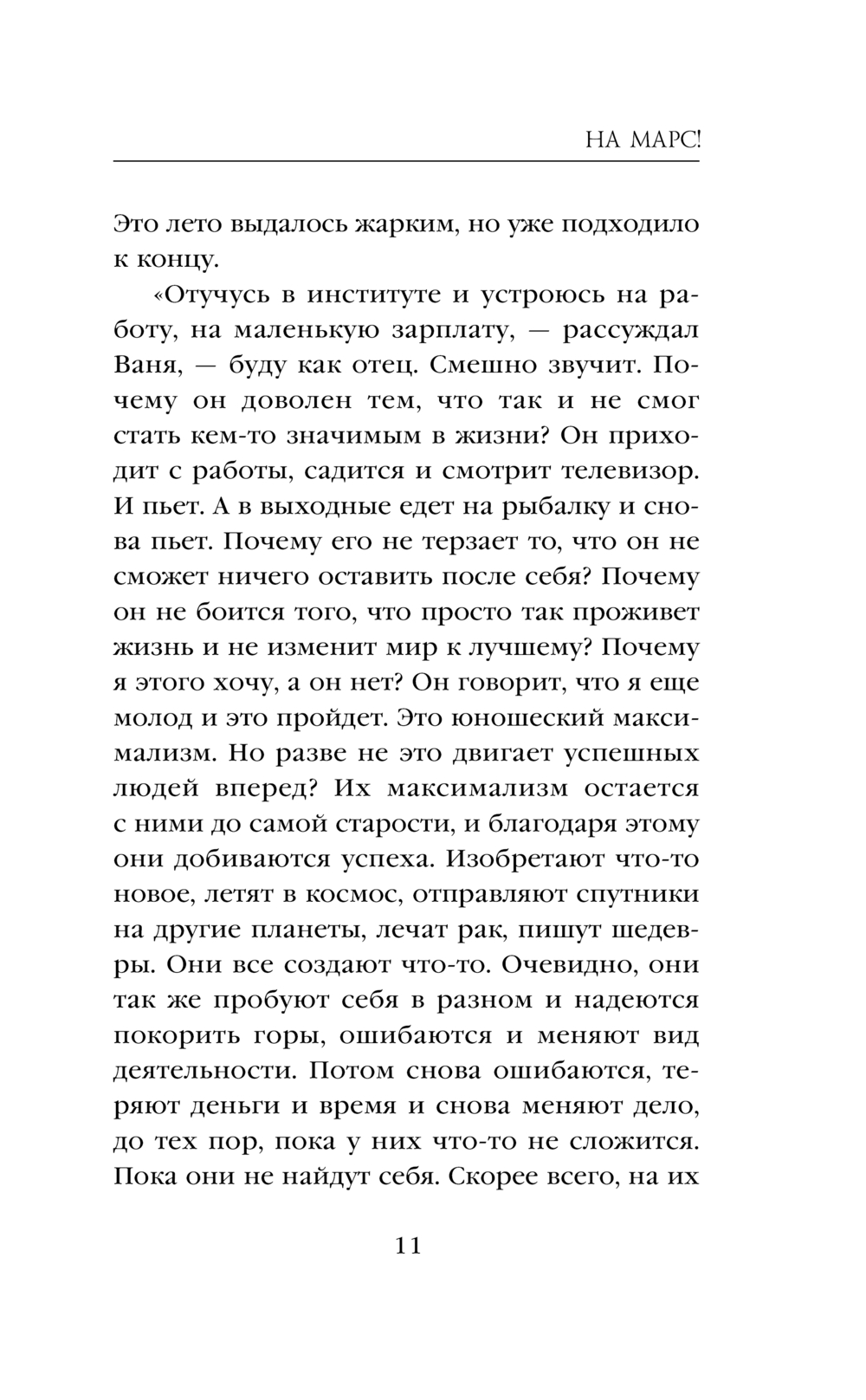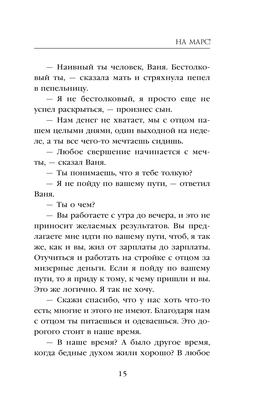 Иван – юноша, мечтающий в будущем колонизировать Марс. На пути к цели его поджидает много трудностей. Но не так пугают препятствия, как правда: Иван узнает, что он не настоящий человек, а персонаж книги. Как жить с пониманием, что тебя не существует, а всем твоим миром управляет невидимая сила, способная написать любое событие?