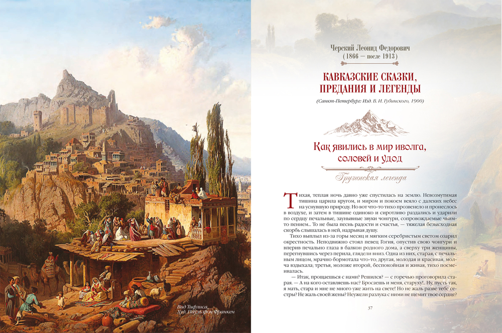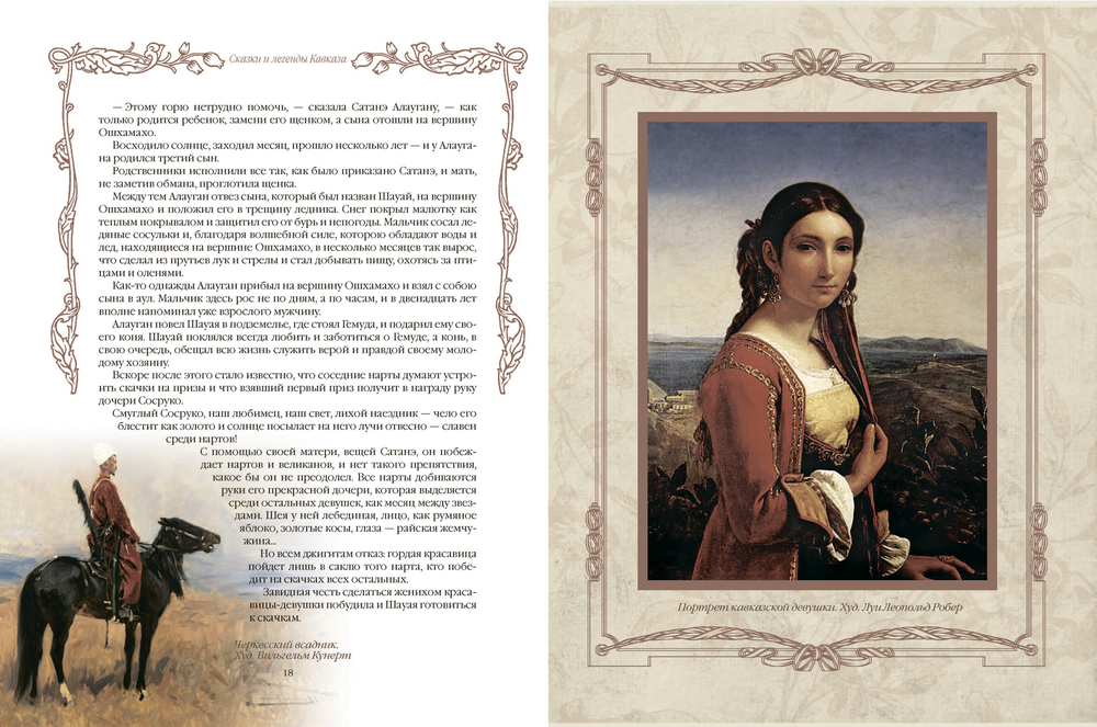 Опубликованные в 1895–1911 годах, впервые они выпускаются в виде единой антологии. Герои этих произведений – бесстрашные богатыри-нарты Сосруко, Алауган, Шауай и Сослан, их мудрая мать Сатаней, грозный бог кузнечного ремесла Тлепш, страшный дракон-зарьяг, хитрые джинны и злобные великаны – погружают читателей в мир снежных вершин и живописных водопадов, горных рек и плодородных пастбищ, открывая им сказочную вселенную, созданную фантазией жителей этого пленительного края.