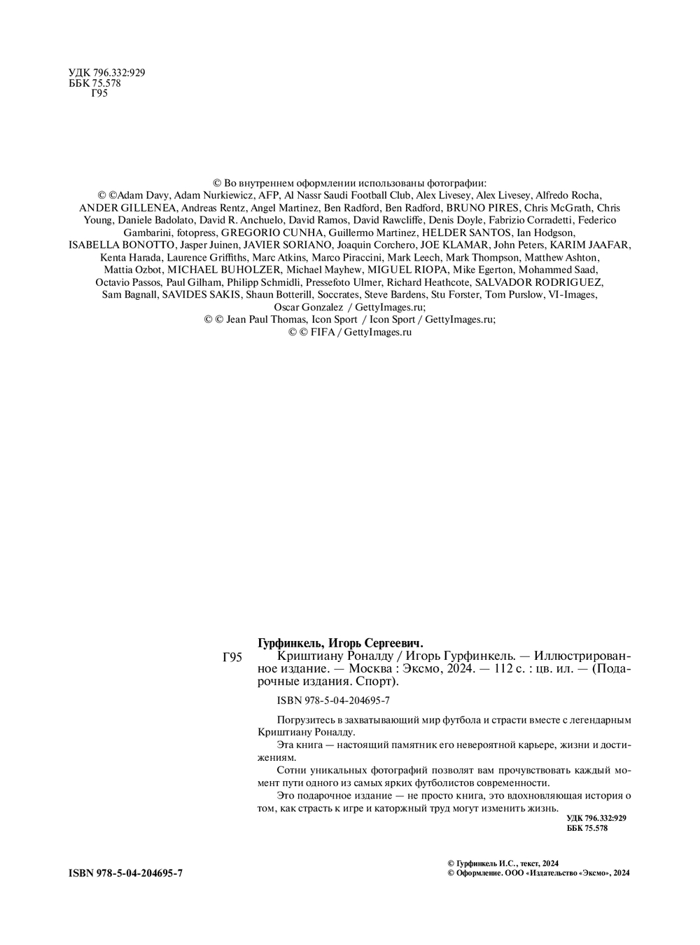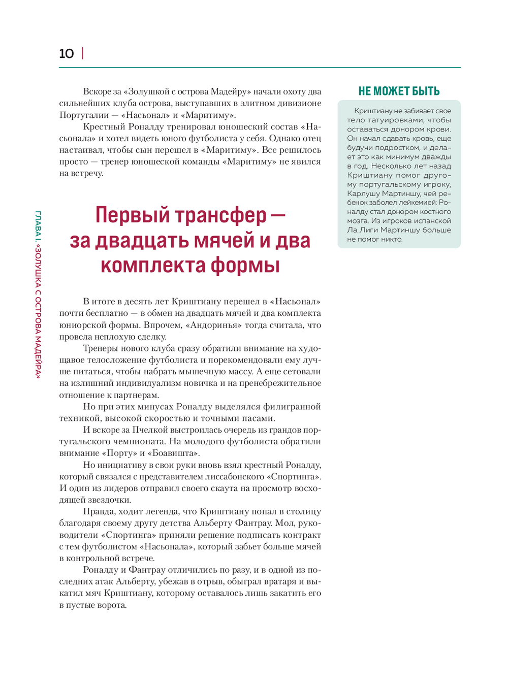 Эта книга – настоящий памятник его невероятной карьере, жизни и достижениям. Сотни уникальных фотографий позволят вам прочувствовать каждый момент пути одного из самых ярких футболистов современности. Эмоциональный текст, пропитанный историями успеха и неудач, расскажет о человеке, который смог перейти все границы и стать иконой мирового футбола.