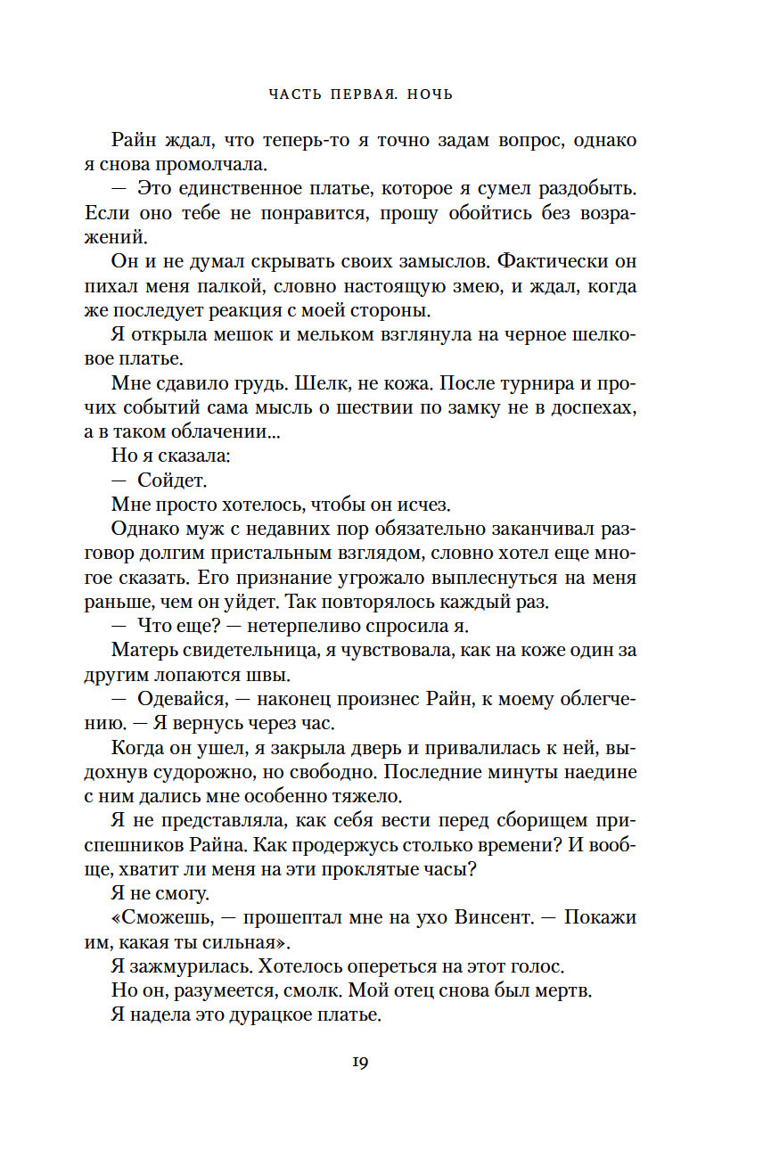 Дом Ночи между тем разрывают политические интриги. Чтобы удержаться на троне и попытаться изменить королевство к лучшему, Райн предлагает Орайе вновь стать союзниками. Союз, где ненависть так тесно переплелась с любовью, а облеченные властью пока не подозревают, каких она требует жертв, может стать единственным спасением для Орайи и королевства. Или разрушить все окончательно.