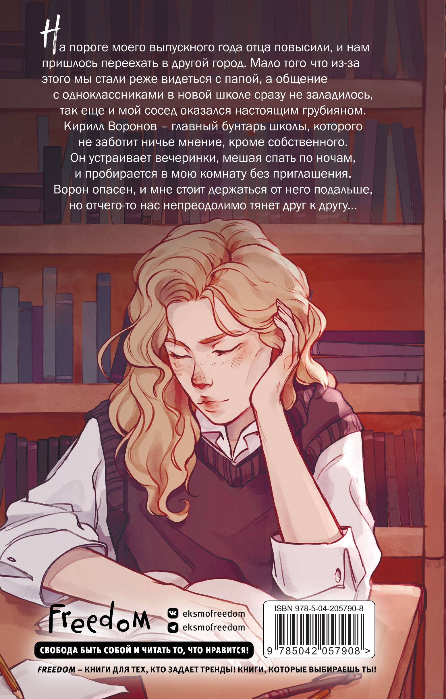 На пороге моего выпускного года отца повысили, и нам пришлось переехать в другой город. Мало того, что из-за этого мы стали реже видеться с папой, а общение с одноклассниками в новой школе сразу не заладилось, так еще и мой сосед оказался настоящим грубияном. Кирилл Воронов – главный бунтарь школы, которого не заботит ничье мнение, кроме собственного. Он устраивает вечеринки, мешая спать по ночам, и пробирается в мою комнату без приглашения. Ворон опасен, и мне стоит держаться от него подальше, но отчего-то нас непреодолимо тянет друг к другу...