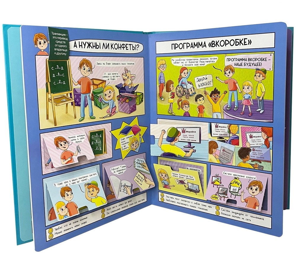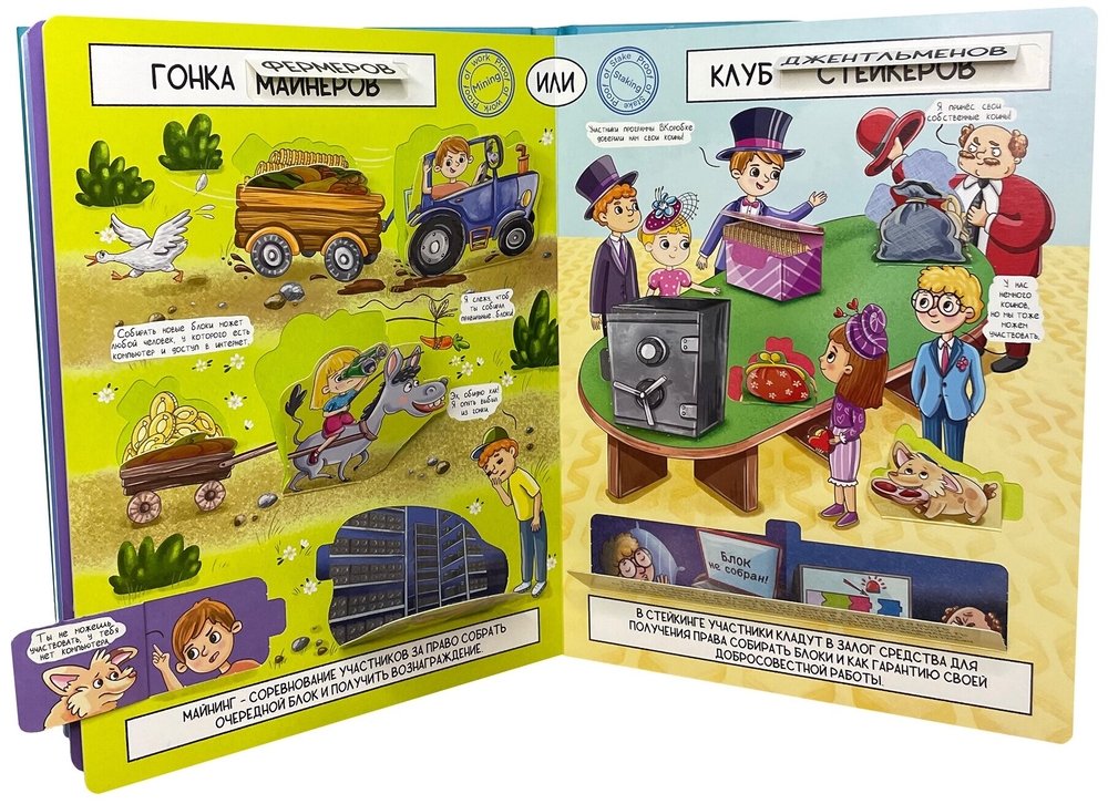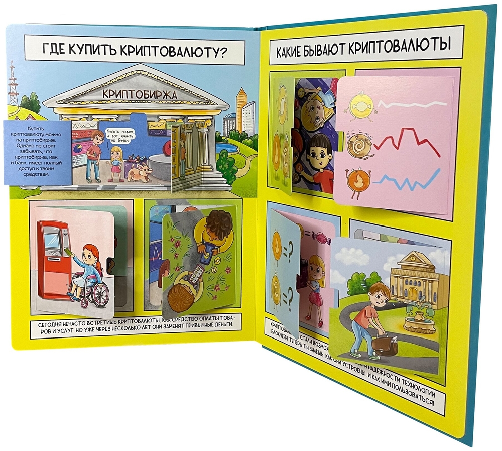 Красочные иллюстрации и простые аналогии позволят быстро погрузиться в мир криптовалют даже юным читателям, а короткие и понятные тексты в окошках помогут разобраться в понятиях и сделать первый шаг к практическому использованию "денег будущего".