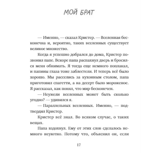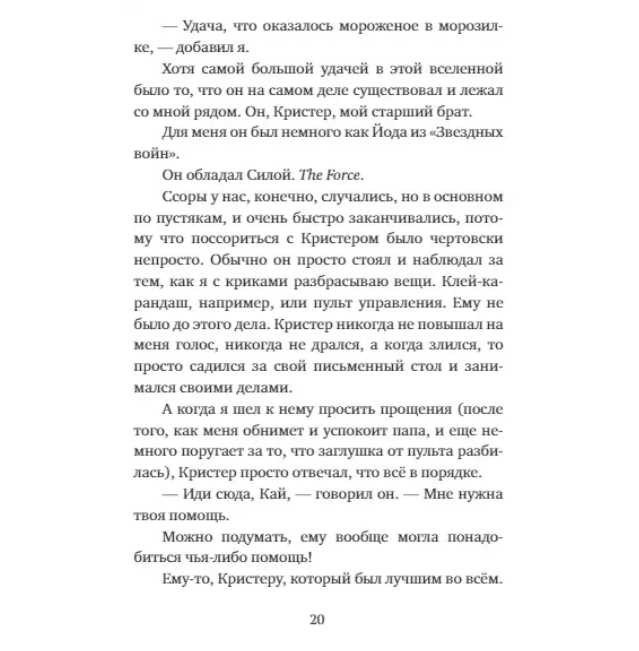 Кристер знает всё о космосе, роботах и параллельных вселенных. Правда, дела в этой вселенной у него идут не очень. Слишком странный, слишком не похожий на других – он становится мишенью для издевок и замыкается в себе, предпочитая этой планете далекие космические просторы. Но его младший брат Кай отказывается от роли молчаливого наблюдателя и решает во что бы то ни стало спасти Кристера. Ведь он, возможно, единственный человек в этом мире, у которого хватает смелости быть самим собой.