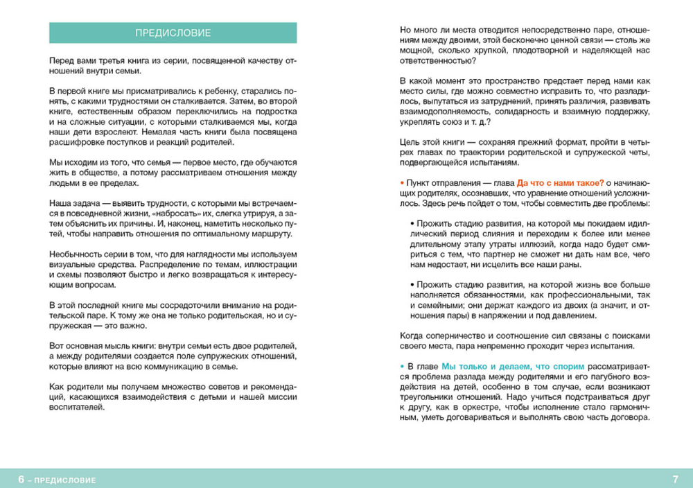 Авторы под разными углами зрения (но неизменно на основе метода позитивной дисциплины Джейн Нельсен) наглядно показывают нам, что может провоцировать кризисы, и намечают пути их преодоления. Следуя по маршруту родительской и супружеской пары, на чью долю выпали испытания, они предлагают читателю поработать над собой и вдвоем, чтобы история отношений пары вновь стала приятной.