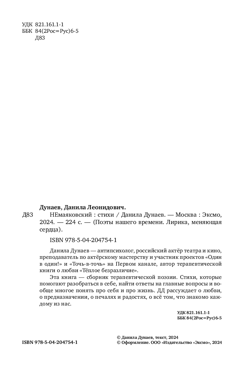 Данила Дунаев – антипсихолог, российский актёр театра и кино, преподаватель по актёрскому мастерству и участник проектов "Один в один!" и "Точь-в-точь" на Первом канале, автор терапевтической книги о любви "Тёплое безразличие".