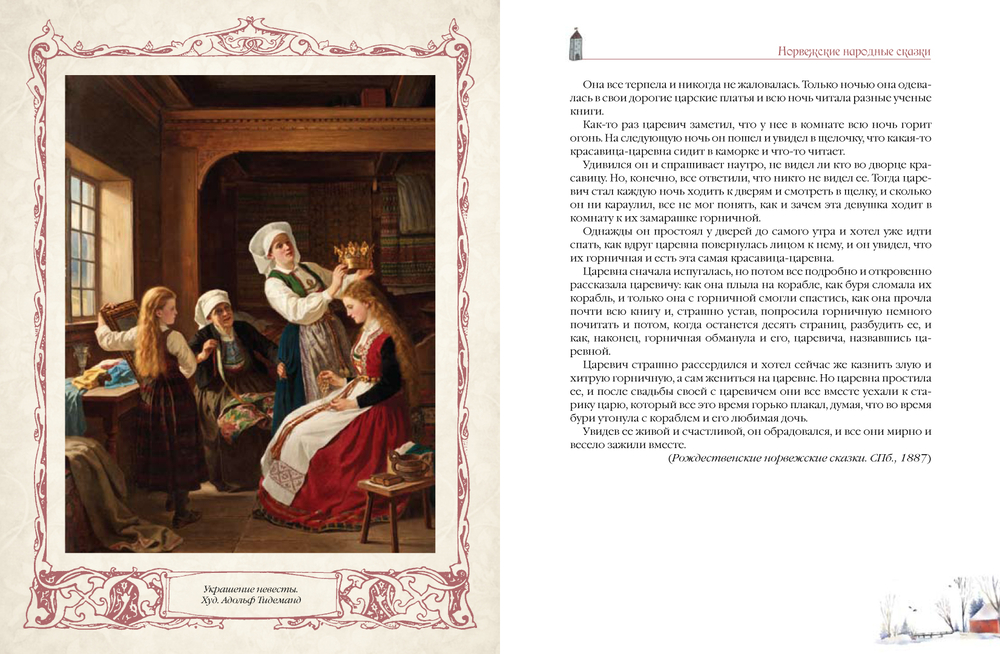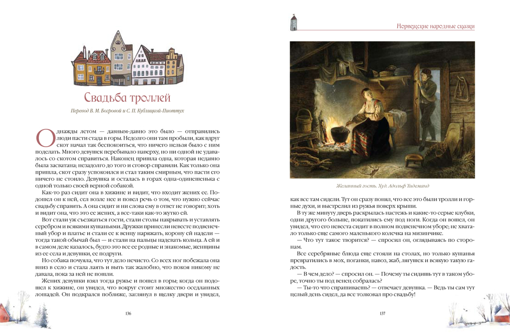 Эта книга впервые познакомит наших читателей с 36 норвежскими сказками, большая часть которых извлечена из различных источников XIX века и не переиздавалась в России целое столетие. Чтобы ваше путешествие по миру сказок было еще более ярким и незабываемым, мы украсили это издание великолепными иллюстрациями норвежских художников — Адольфа Тидеманда, Акселя Эндера, Эрика Теодора Вереншёлля, Кристиана Крога, Яна Экенеса, Кнуда Бергслина, Петера Николая Арбо, Эйлифа Петерссена, Сесилии Даль, Ханса Фредрика Гуде, Хальфдана Эгедиуса и многих других.