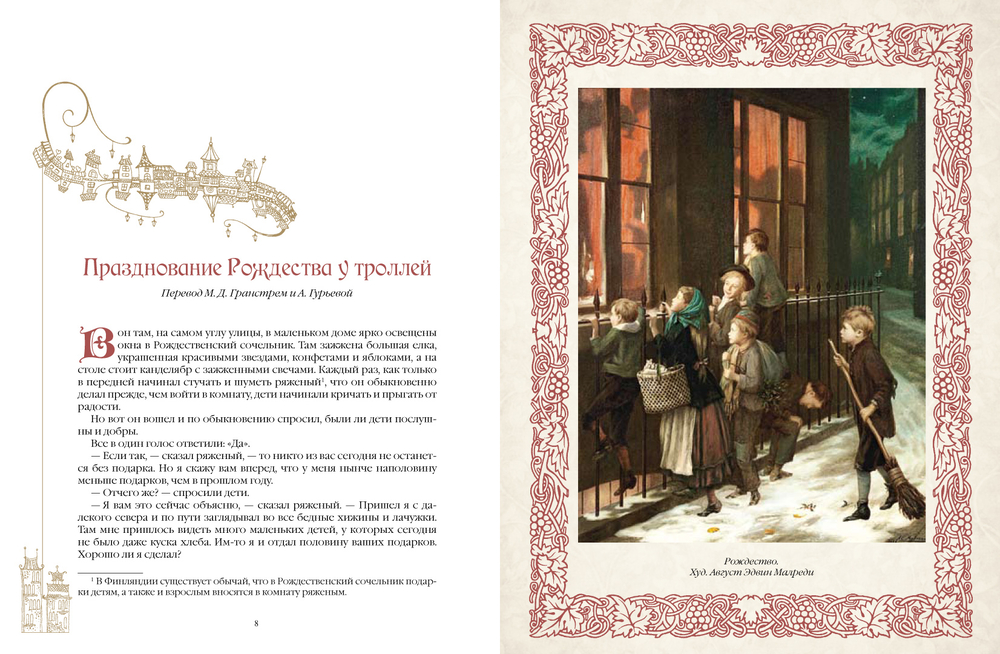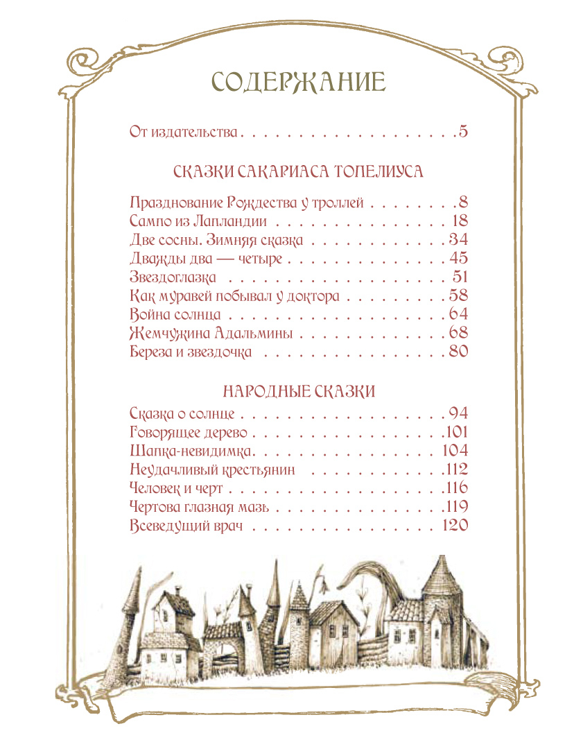 В этой книге мы представляем вам сказочные истории страны Суоми, на которых росли Туве Янссон, Сакариас Топелиус и другие финские писатели. В них мы переносимся в чудесную волшебную Вселенную, в которой присутствуют добрые и злые духи, гномы и эльфы, тролли и русалки, домовые и водяные, где волшебство является реальностью, а хитрые звери зачастую одерживают победу над простодушными людьми.