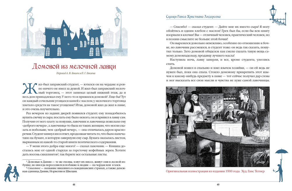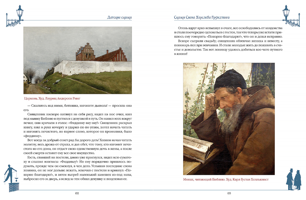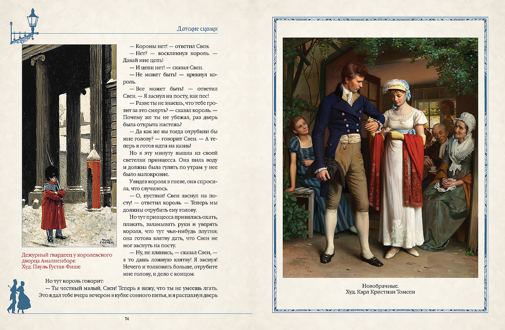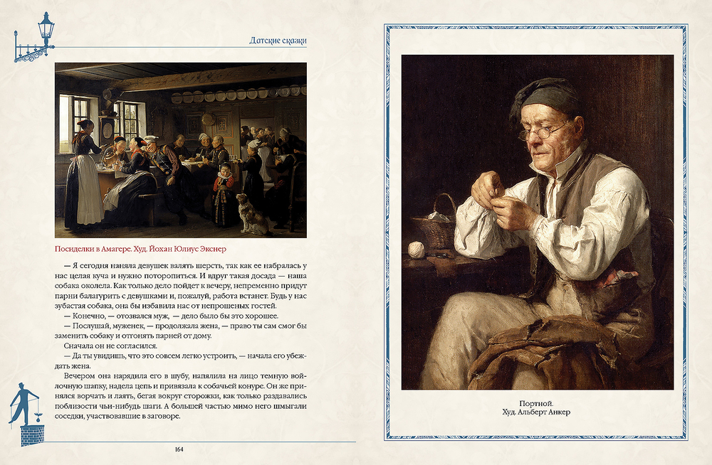 Дивную атмосферу сказок дополняют иллюстрации знаменитых датских художников — Ганса Тегнера, Расмуса Кристиансена, Вильгельма Педерсена, Йенса Юэля, Пауля Густава Фишера, Ганса Андерсена Брендекильде, Петера Мёрка Мёнстеда, Йохана Юлиуса Экснера, Лаурица Андерсена Ринга и многих других.
