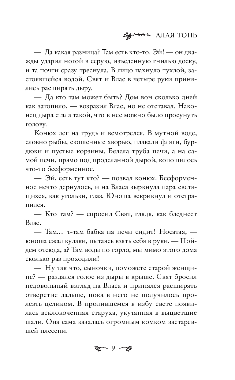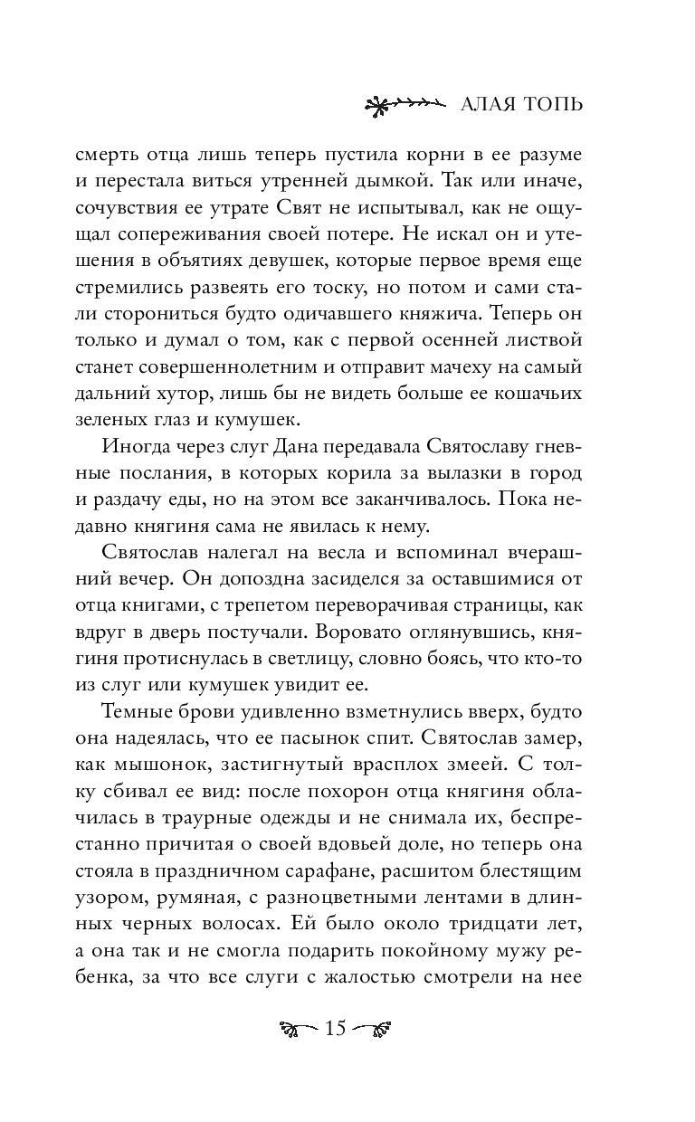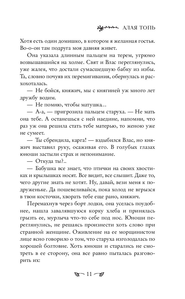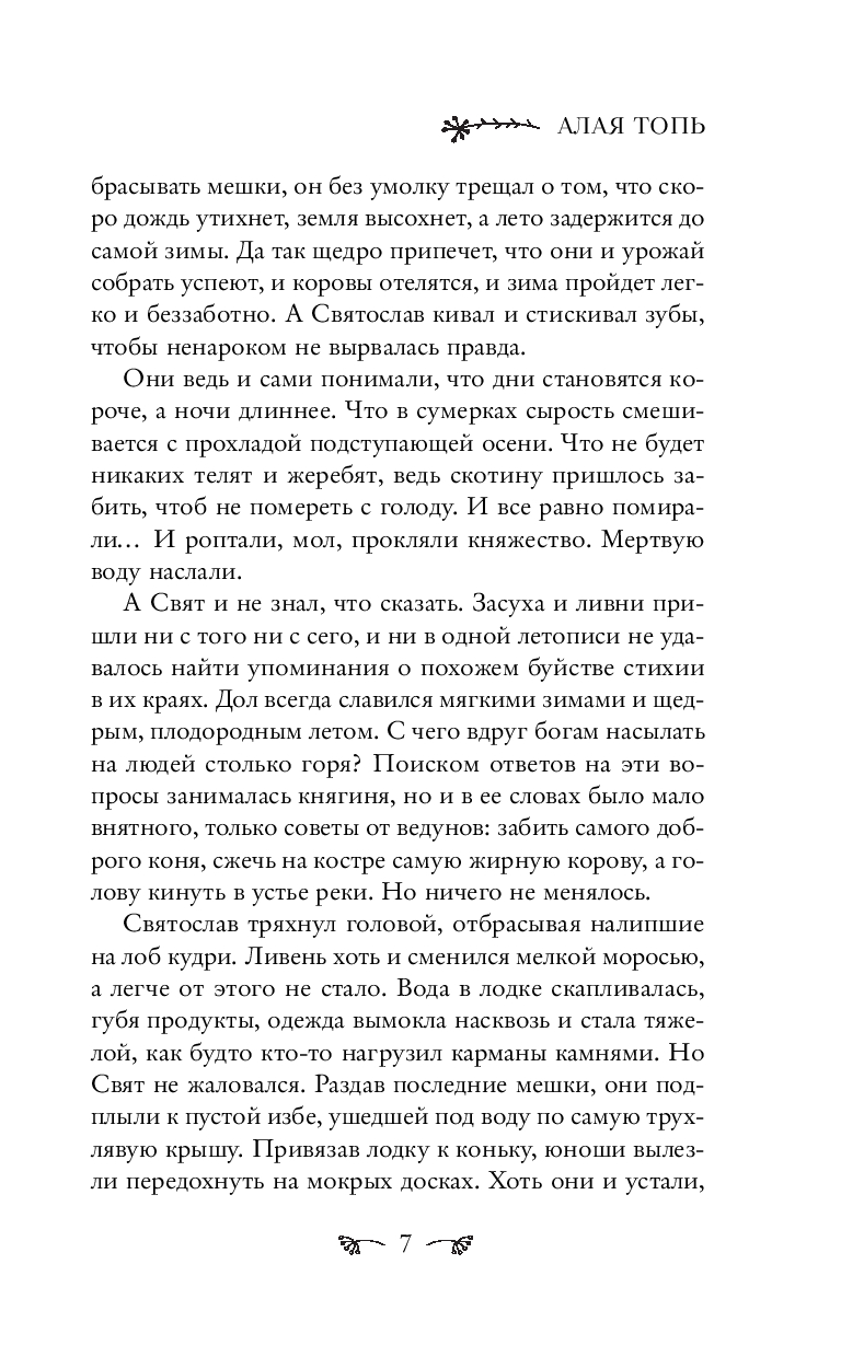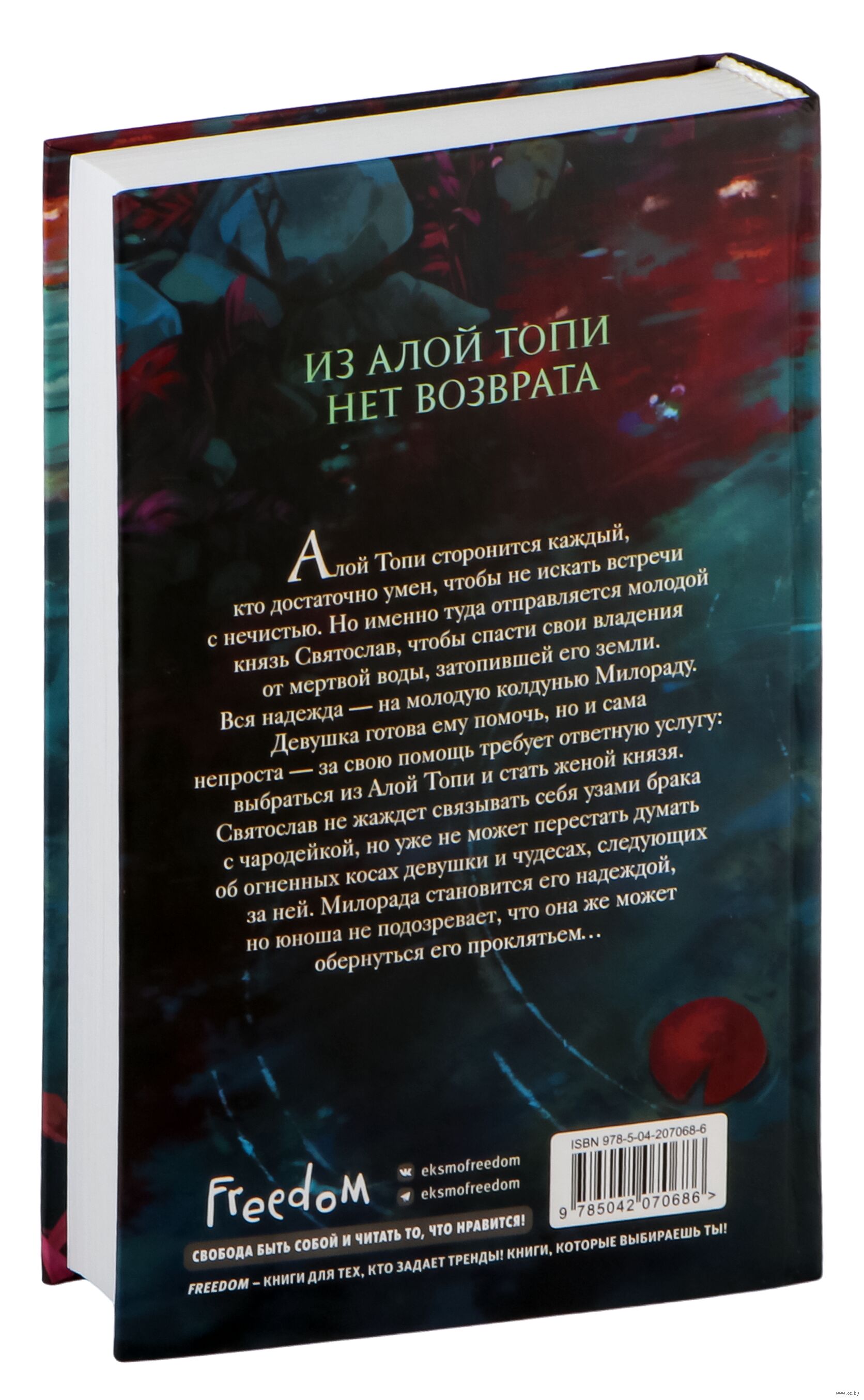 Алой Топи сторонится каждый, кто достаточно умен, чтобы не искать встречи с нечистью. Но именно туда отправляется молодой князь Святослав, чтобы спасти свои владения от мертвой воды, затопившей его земли. Вся надежда – на молодую колдунью Милораду. Девушка готова ему помочь, но и сама не проста – за свою помощь требует ответную услугу: выбраться из Алой Топи и стать женой князя. Святослав не жаждет связывать себя узами брака с чародейкой, но уже не может перестать думать об огненных косах девушки и чудесах, следующих за ней. Милорада становится его надеждой, но юноша не подозревает, что она же может обернуться его проклятьем...