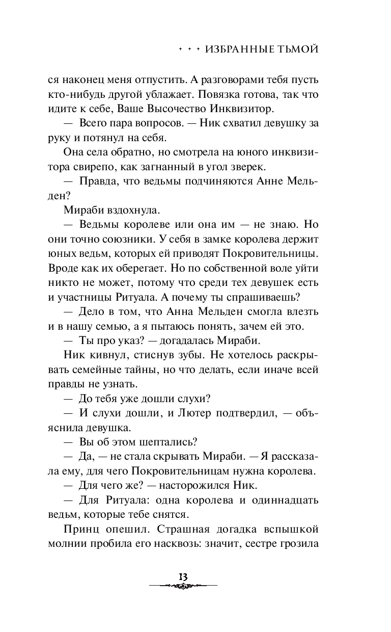 Принц Никос разрывается между политическим долгом и службой в инквизиции. В его жизни нет места любви. Но сколько продержится юноша, запирая свое сердце на замок, если его неосознанно влечет к двум девушкам? Защита Мираби – еще одна обязанность Ника, но чувства к ней мешают в должной мере ее оберегать. Преследователи не успокоились, и в их руках ведьма может стать мощным оружием. Никос должен сделать выбор, ведь ведьма и принц – непозволительный союз, а любой неверный шаг грозит обернуться крахом всего мира.