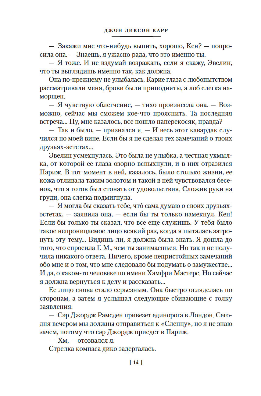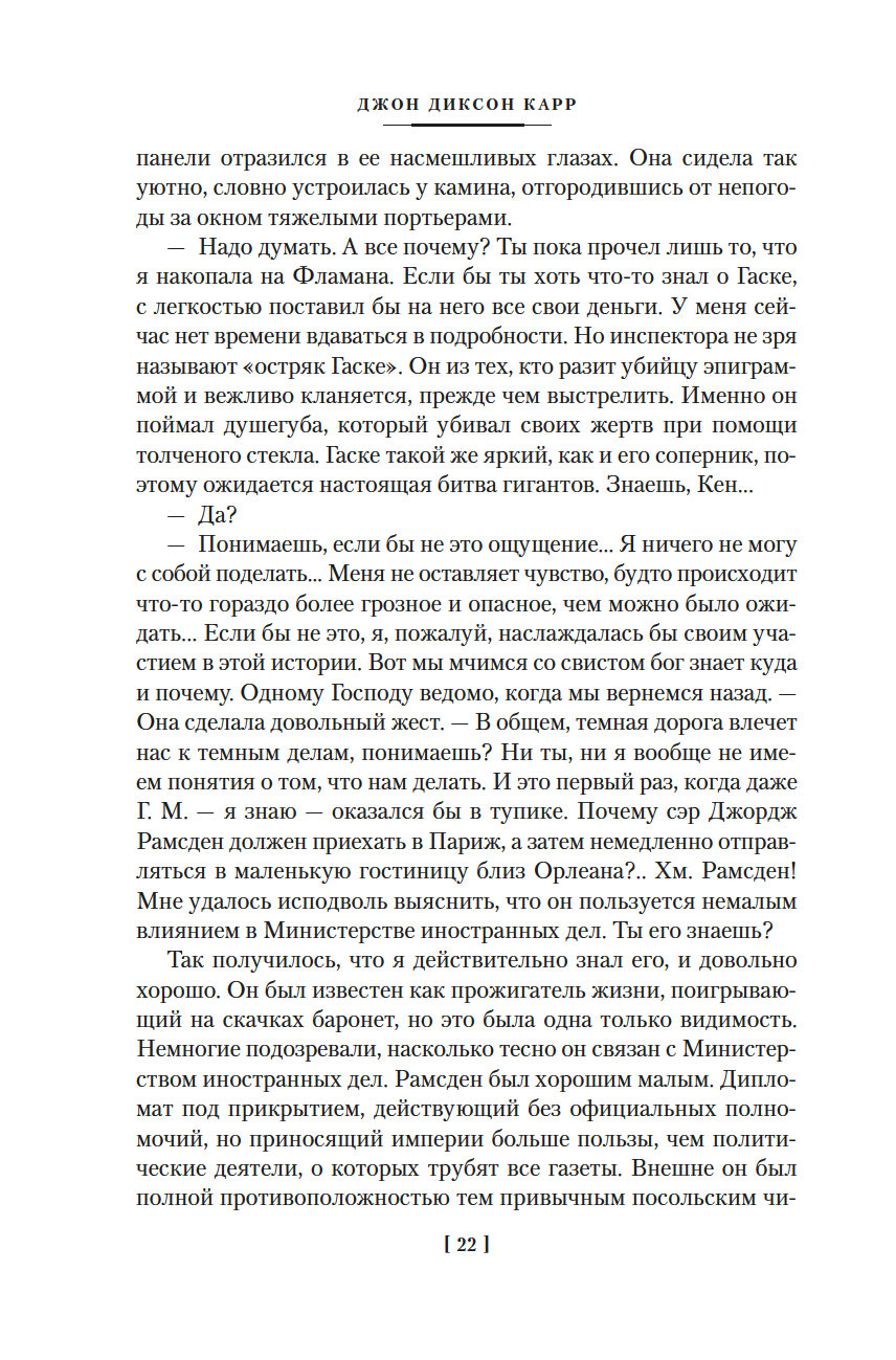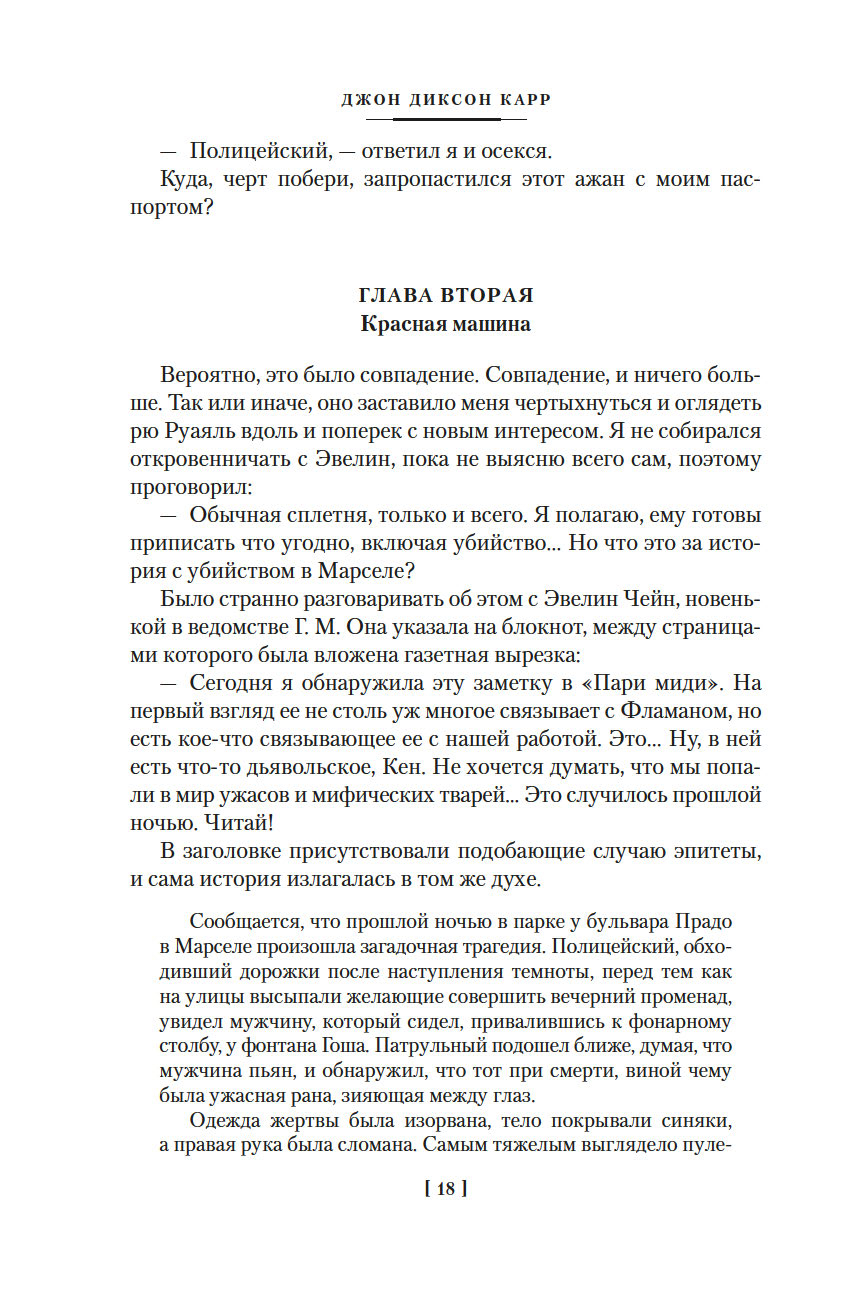 Золотой век детектива оставил немало звездных имен – А. Кристи, Г. К. Честертон, Г. Леру и др. В этой яркой плеяде Джон Диксон Карр (1906-1977) занимает самое почетное место. "Убийство в запертой комнате", где нет места бешеным погоням и перестрелкам, а круг подозреваемых максимально ограничен, – излюбленный прием автора. Карр заманивает читателя в сети ловко расставленных ловушек, ложных подсказок, обманных ходов и тонких намеков и предлагает принять участие в решении хитроумной головоломки.