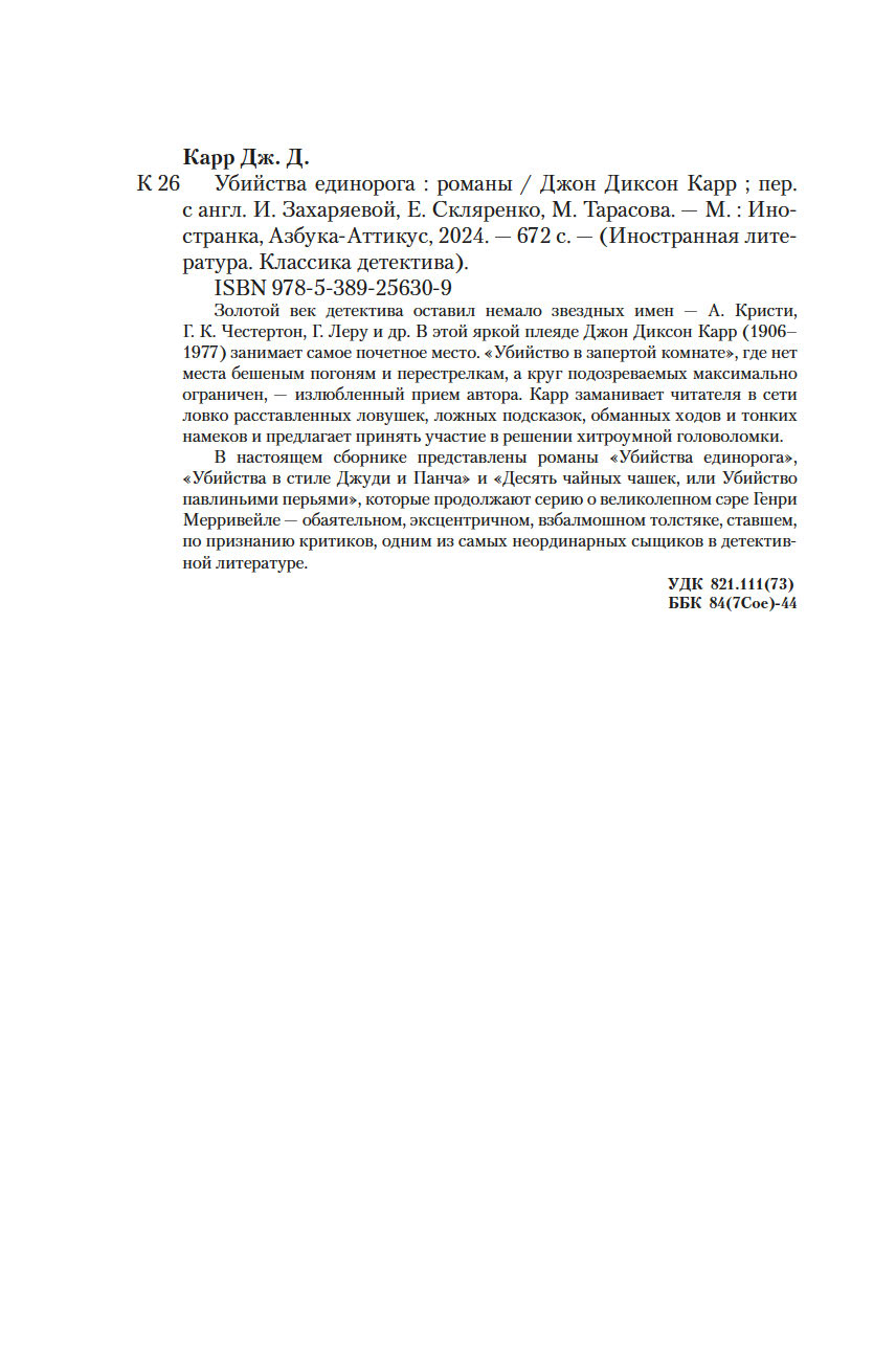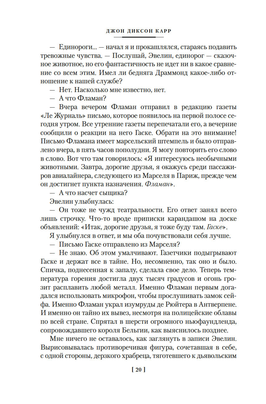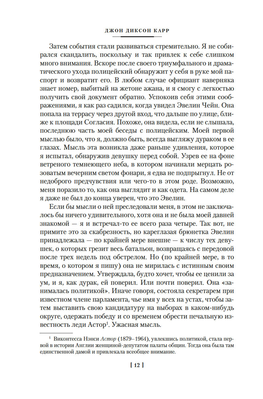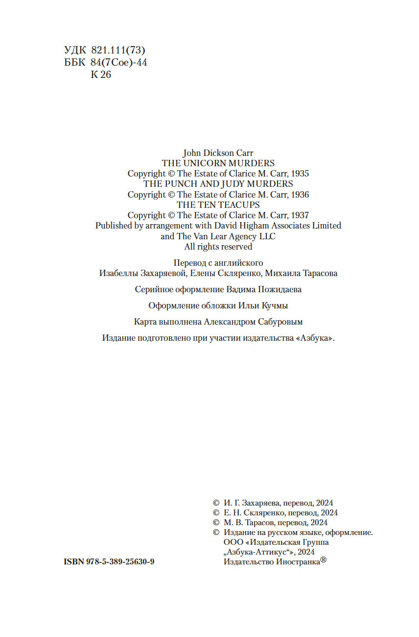 Золотой век детектива оставил немало звездных имен – А. Кристи, Г. К. Честертон, Г. Леру и др. В этой яркой плеяде Джон Диксон Карр (1906-1977) занимает самое почетное место. "Убийство в запертой комнате", где нет места бешеным погоням и перестрелкам, а круг подозреваемых максимально ограничен, – излюбленный прием автора. Карр заманивает читателя в сети ловко расставленных ловушек, ложных подсказок, обманных ходов и тонких намеков и предлагает принять участие в решении хитроумной головоломки.
