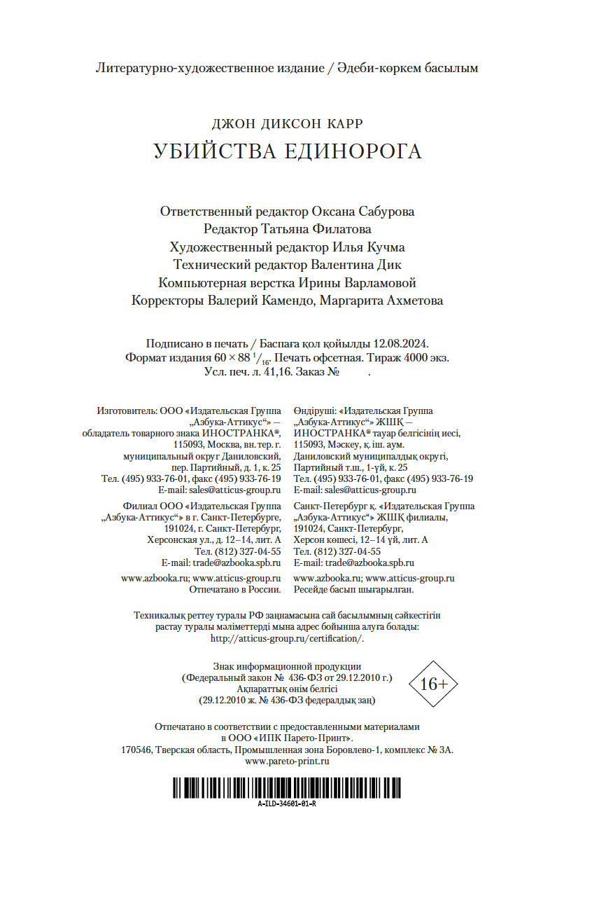 | Изготовитель | ООО "Издательство "Иностранка". 109017, РФ, г. Москва, ул. Пятницкая, 41 |