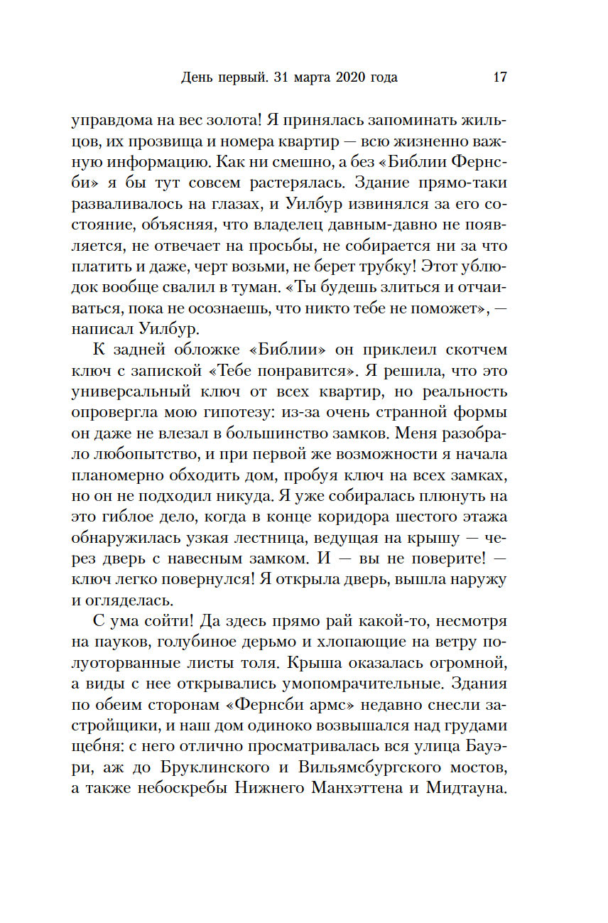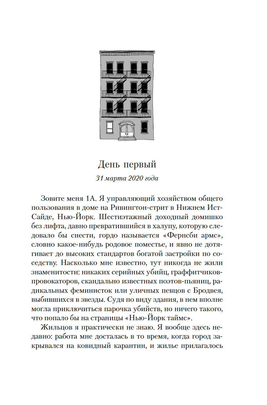 Напуганные локдауном жильцы нью-йоркской многоэтажки по ночам выбираются на крышу, чтобы рассказывать и слушать истории. Кто-то вспоминает о леденящем контакте с призраком, кто-то вдохновенно читает стихи Марины Цветаевой, а вот этот сосед толкует о том, как научить враждующих кроликов уживаться друг с другом... На импровизированные собрания приходит все больше народу, не подозревая о том, что каждая история тайно записывается одним из присутствующих и сопровождается комментарием. Чем закончатся все эти разговоры?..