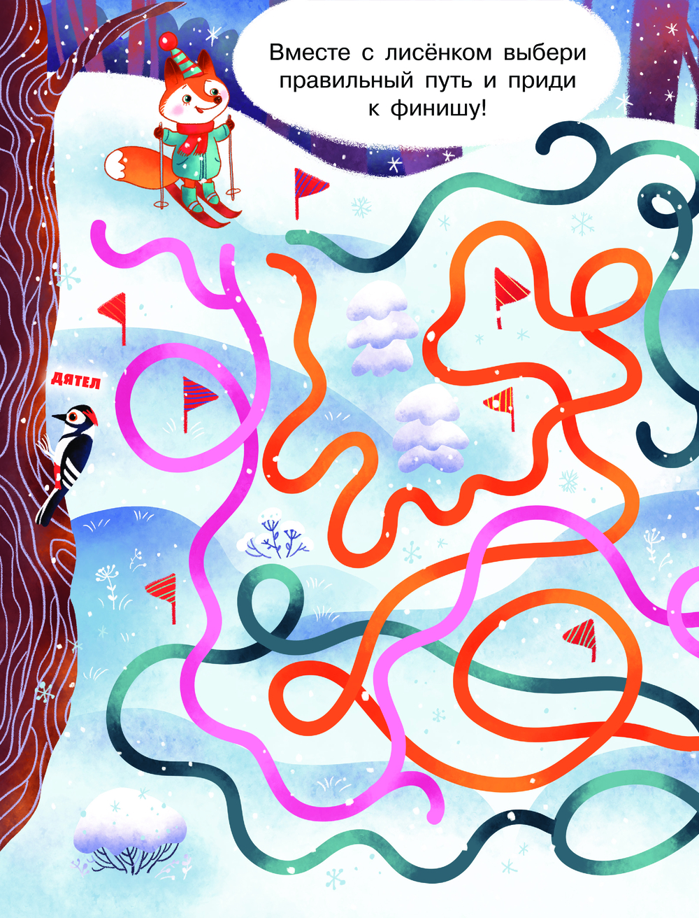Малыш сможет проходить лабиринты карандашом или пальчиком, развить логическое мышление, внимание и координацию. Увлекательные лабиринты, красочные иллюстрации и зимняя тематика подарят массу радости и новогоднего настроения.