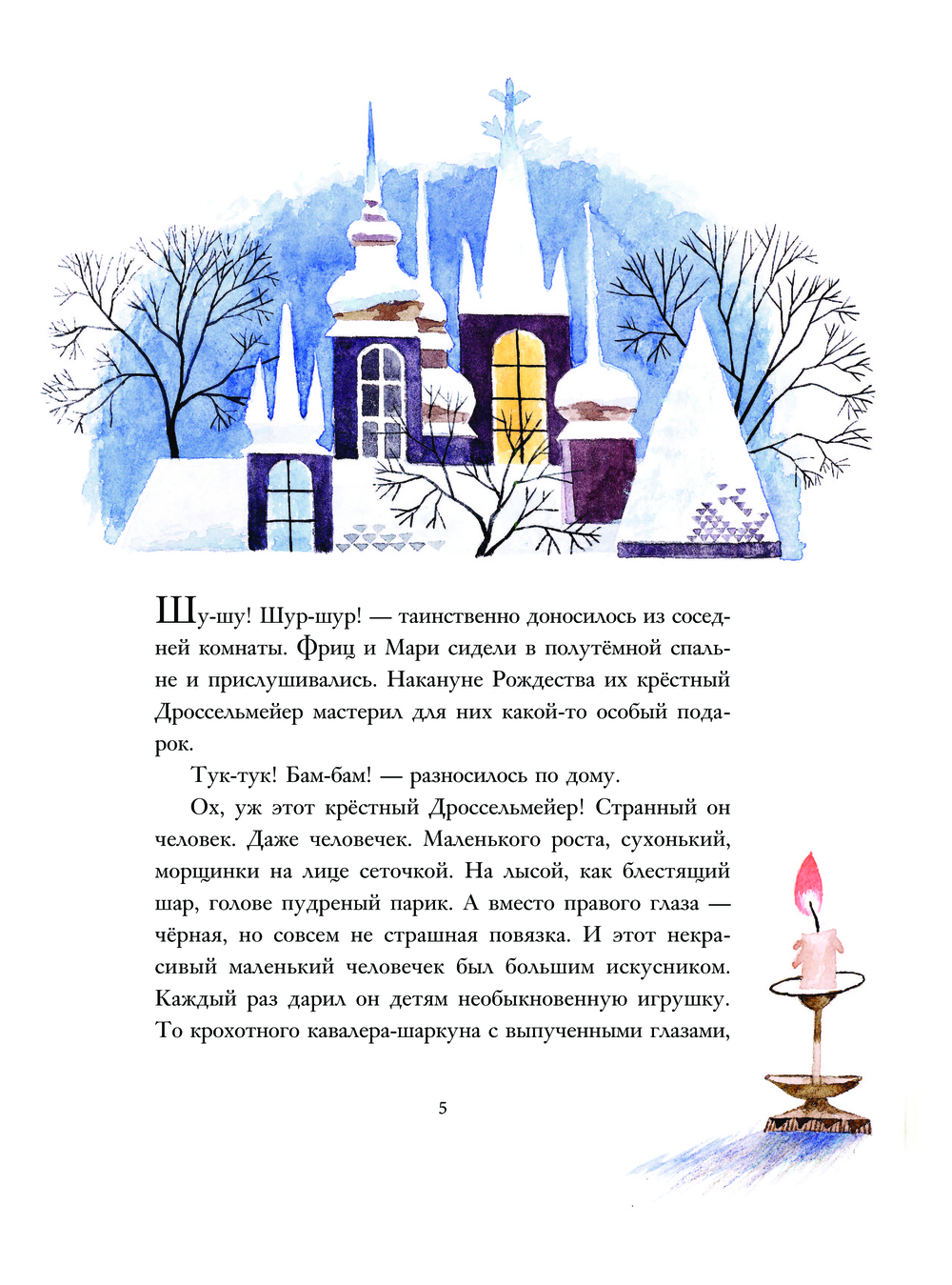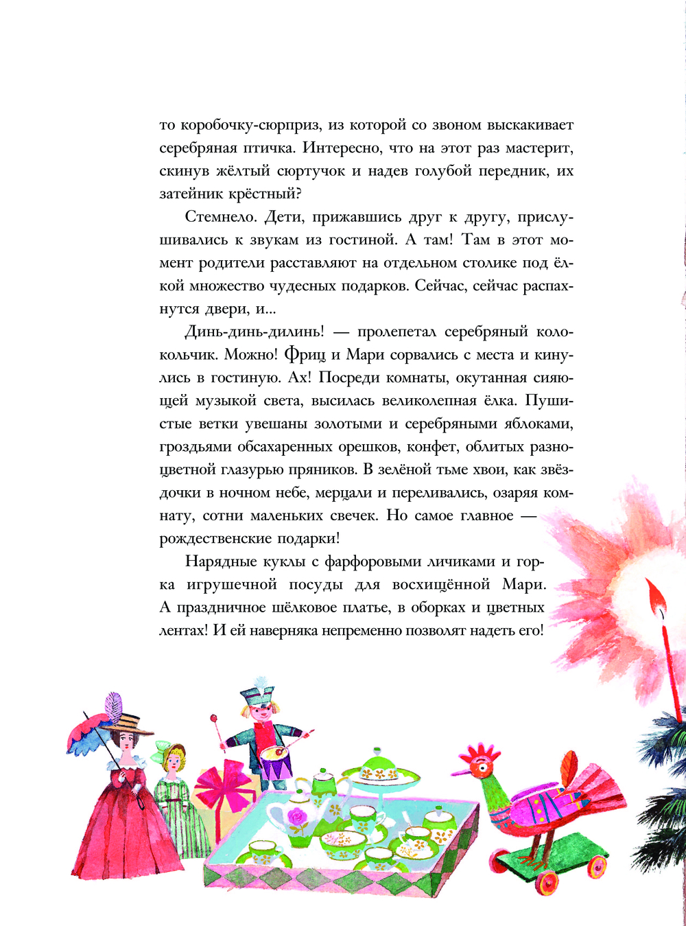 "Щелкунчик" – это атмосфера праздника, волшебства и тайны. Классическая история Э.Т.А. Гофмана про отважную Мари, непоседливого Фрица, смелого Щелкунчика и страшного мышиного короля захватывает читателей вот уже более 200 лет! Великолепные, атмосферные, яркие иллюстрации Надежды Бугославской перенесут вас в мир чудес. Иллюстрации публикуются впервые!