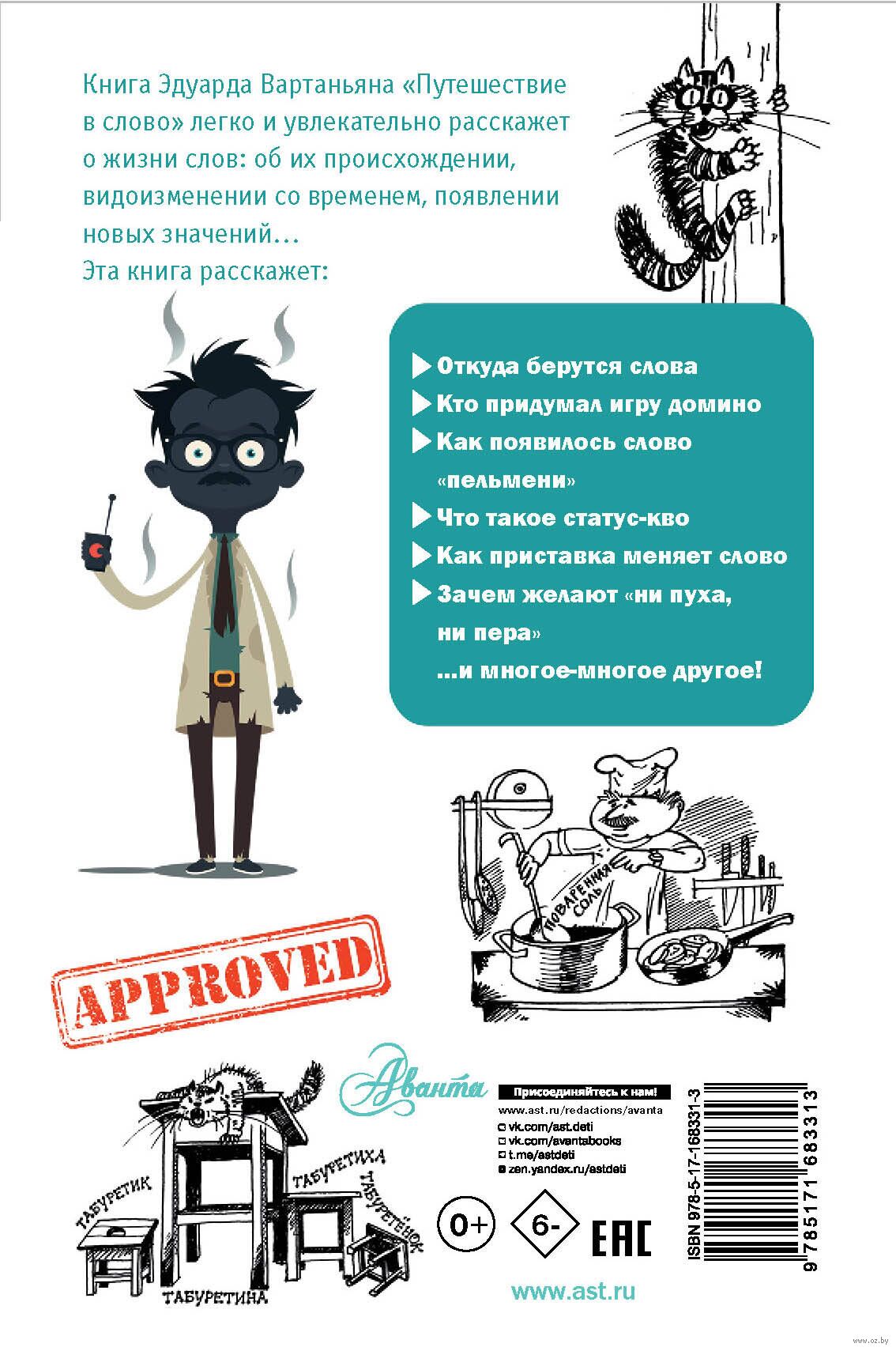 "Путешествие в слово" – это необыкновенно увлекательная книга Эдуарда Вартаньяна, рассказывающая о жизни слов – об их происхождении (этимологии), видоизменении со временем, появлении новых значений... Ведь русский язык, на котором говорили сто или двести лет назад, здорово отличается от современного. Как возникают новые слова? Откуда берутся заимствования? Что такое фразеологизмы и зачем желают "ни пуха ни пера"? Кто придумал слово "миллион" и почему пельмени так называются? Обо всём этом и многом другом нам поведает автор.