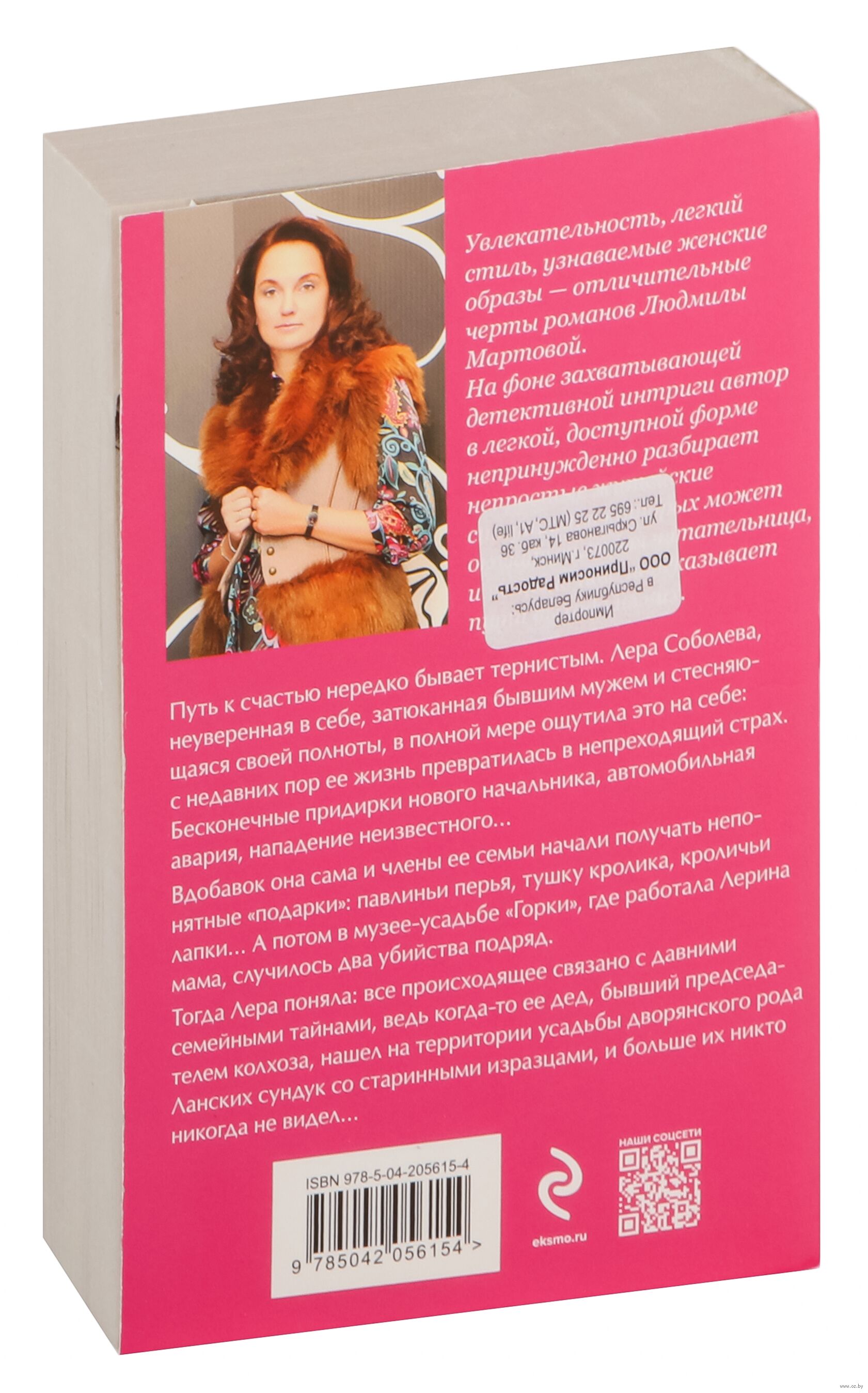 Путь к счастью нередко бывает тернистым. Лера Соболева, неуверенная в себе, затюканная бывшим мужем и стесняющаяся своей полноты, в полной мере ощутила это на себе: с недавних пор ее жизнь превратилась в непреходящий страх. Бесконечные придирки нового начальника, автомобильная авария, нападение неизвестного... Вдобавок она сама и члены ее семьи начали получать непонятные "подарки": павлиньи перья, тушку кролика, кроличьи лапки... А потом в музее-усадьбе "Горки", где работала Лерина мама, случилось два убийства подряд. Тогда Лера поняла: все происходящее связано с давними семейными тайнами, ведь когда-то ее дед, бывший председателем колхоза, нашел на территории усадьбы дворянского рода Ланских сундук со старинными изразцами, и больше их никто никогда не видел...