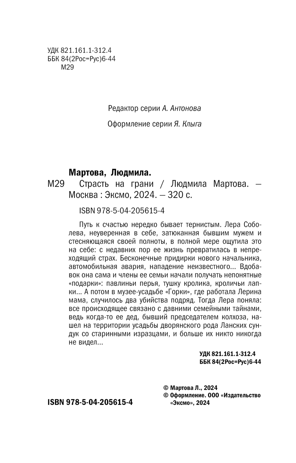 | Серия | Желание женщины. Детективные романы Л. Мартовой |