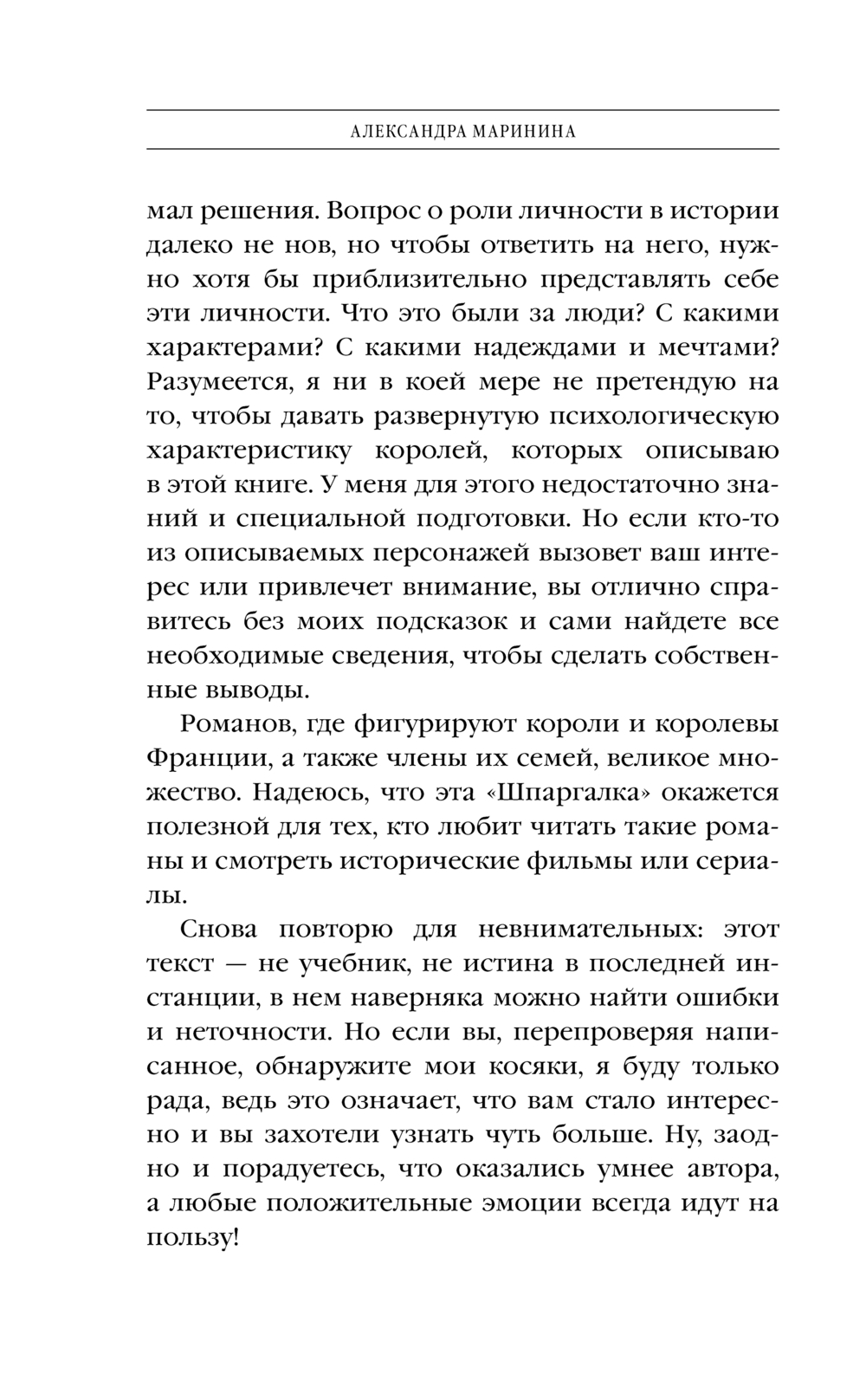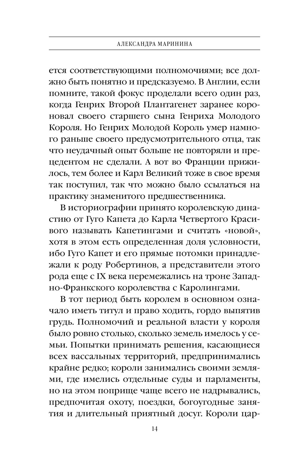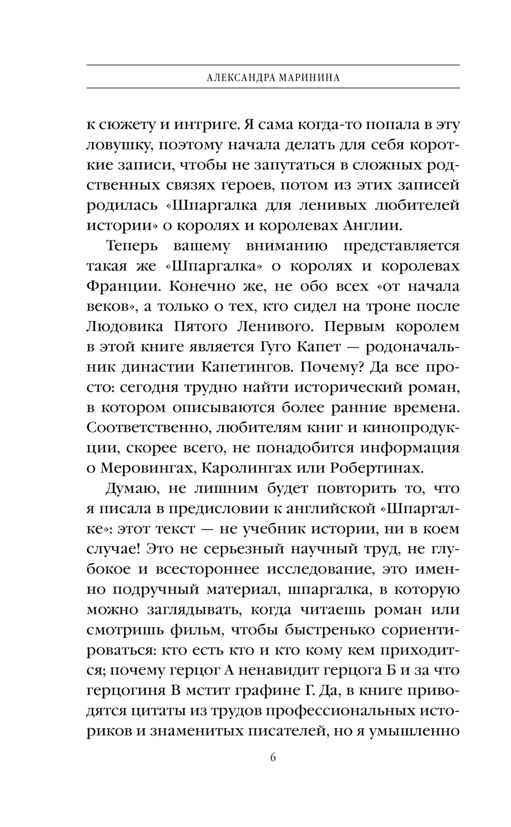 Новая историческая "шпаргалка" от Александры Марининой. На этот раз – французская. Париж, Версаль, блистательные короли, дерзкие королевы, изящные фрейлины и смелые мушкетёры... Ну кто из нас с детства не был очарован Францией и ее историей! C особым "марининским" юмором в книге рассказывается история французских королей начиная с Гуго Капета, основателя династии Капетингов до Карла Восьмого из династии Валуа. Вы узнаете что это были за люди, с какими талантами и недостатками, какими надеждами и мечтами они жили.