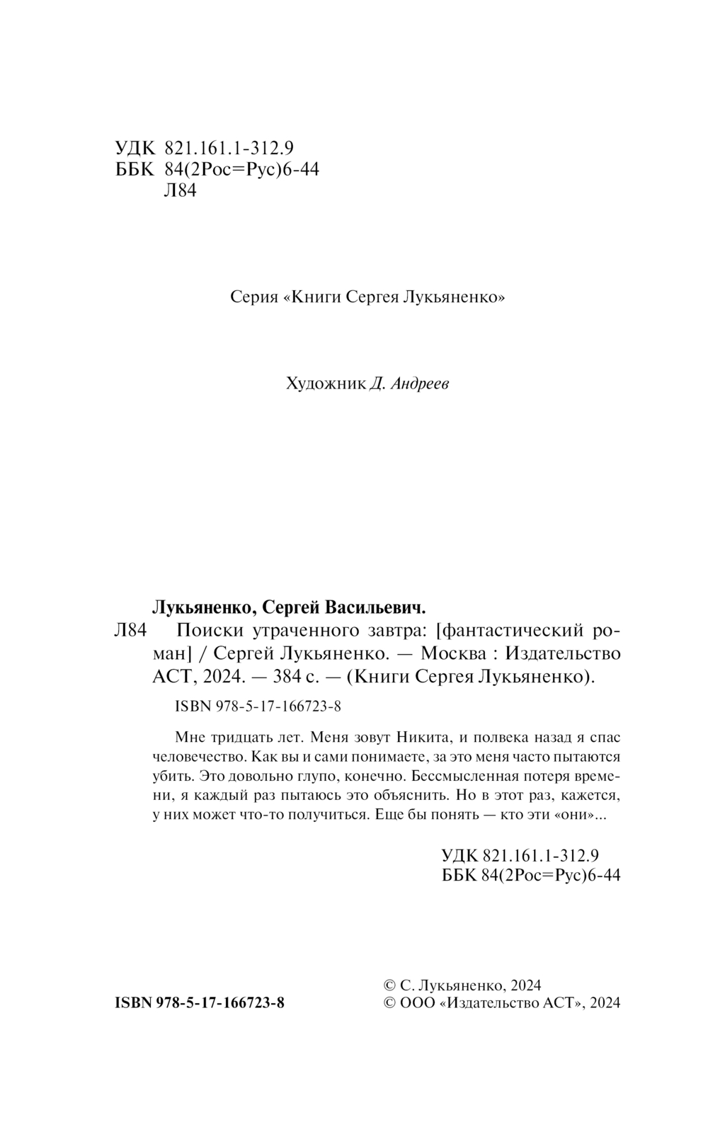 Мне тридцать лет. Меня зовут Никита и полвека назад я спас человечество. Как вы и сами понимаете, за это меня часто пытаются убить. Это довольно глупо, конечно. Бессмысленная потеря времени, я каждый раз пытаюсь это объяснить. Но в этот раз, кажется, у них может что-то получиться. Еще бы понять – кто эти "они"...