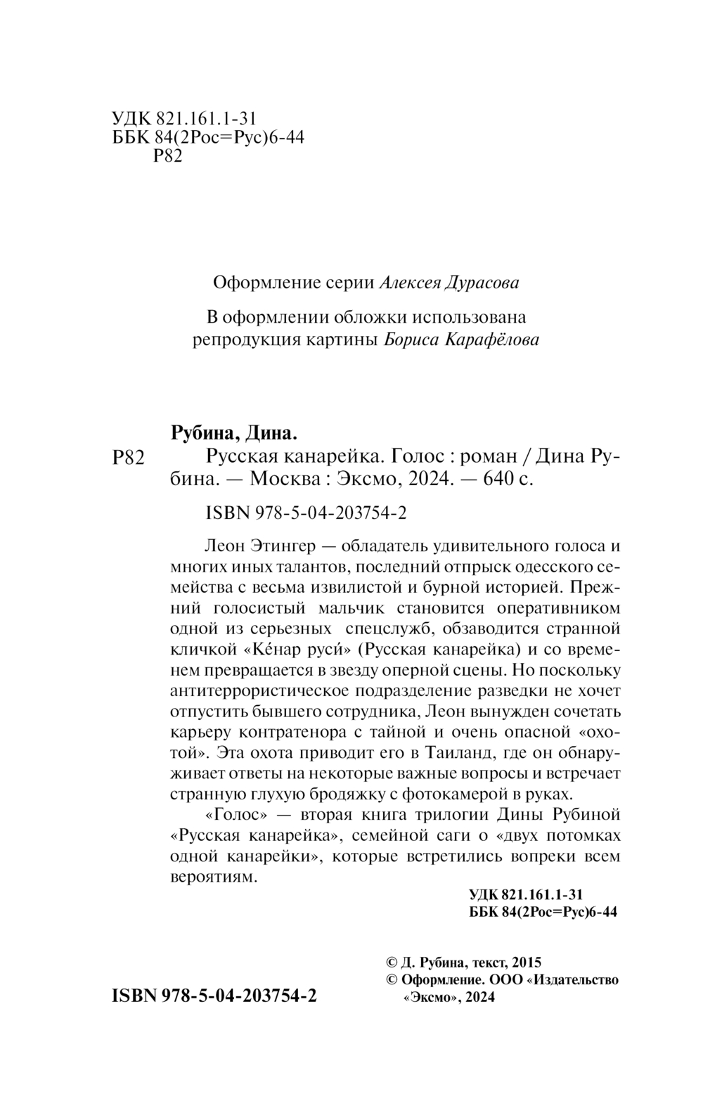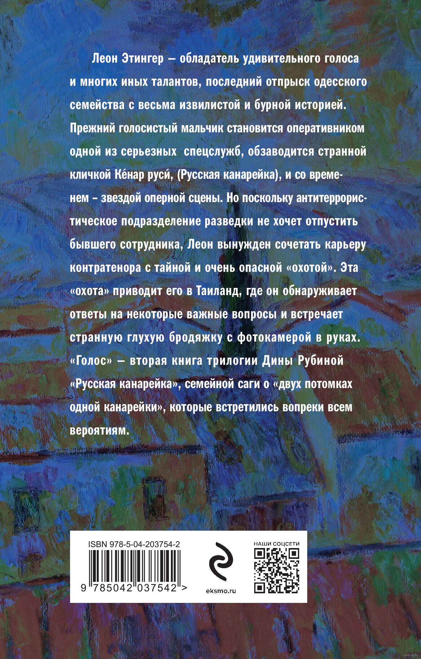 "Голос" – вторая книга трилогии Дины Рубиной "Русская канарейка", семейной саги о "двух потомках одной канарейки", которые встретились вопреки всем вероятиям.
