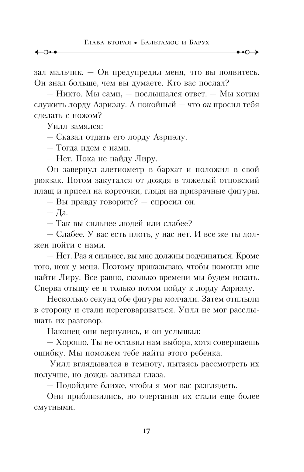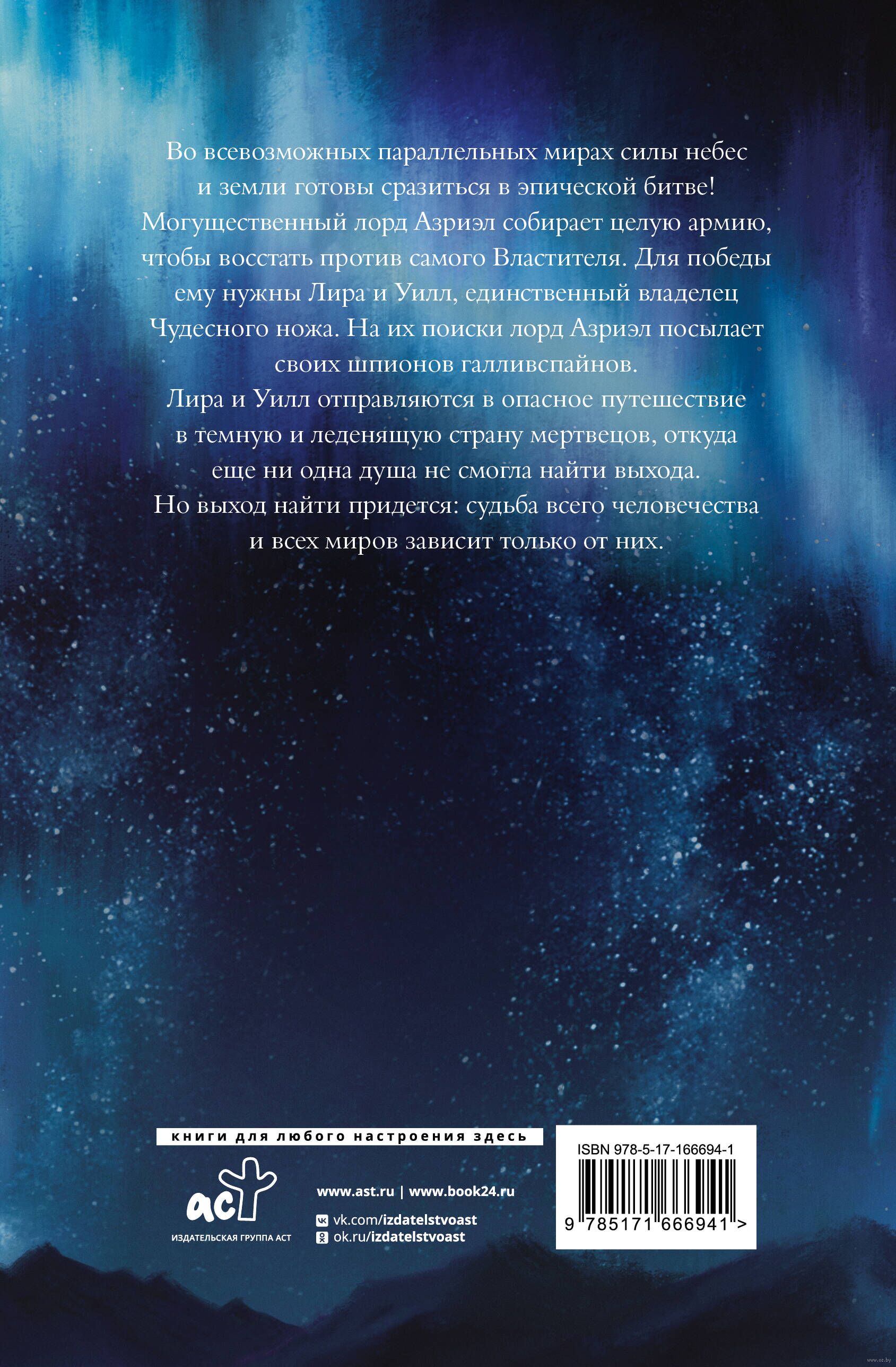 Во всевозможных параллельных мирах силы небес и земли готовы сразиться в эпической битве! Могущественный лорд Азриэл собирает целую армию, чтобы восстать против самого Властителя. Для победы ему нужны Лира и ее друг Уилл с волшебным ножом. На их поиски лорд Азриэл посылает своих шпионов – юрких галливспайнов.