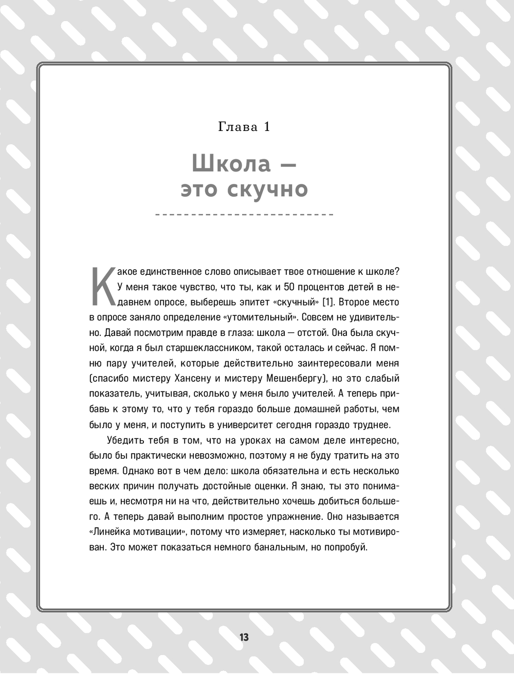 В издании есть интересные упражнения, органайзер для учета времени, разнообразные анкеты и увлекательная настольная игра, которые максимально зарядят мальчика-подростка на подготовку к экзаменам и покажут ему, что можно учиться не в ущерб личной жизни.