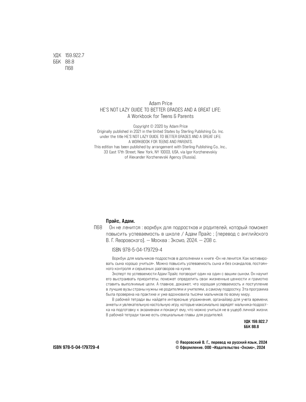В рабочей тетради также встречаются главы, которые предназначены исключительно для родителей, потому что эксперт верит в совместную работу взрослых и детей. Адам Прайс уверен, что родителям тоже стоит поменять свое отношение к учебе сына.