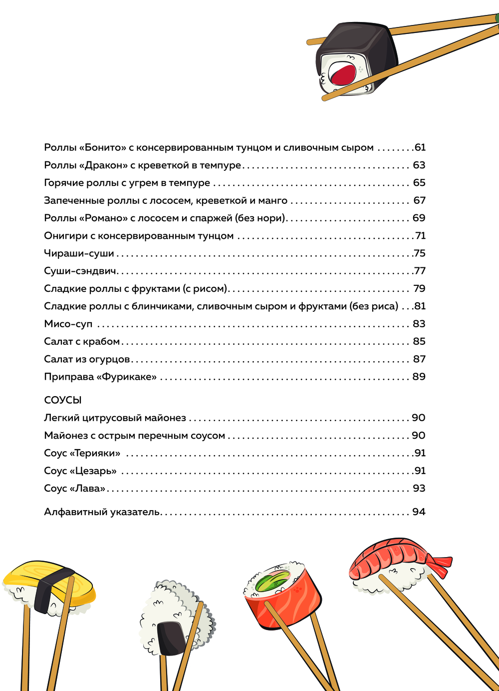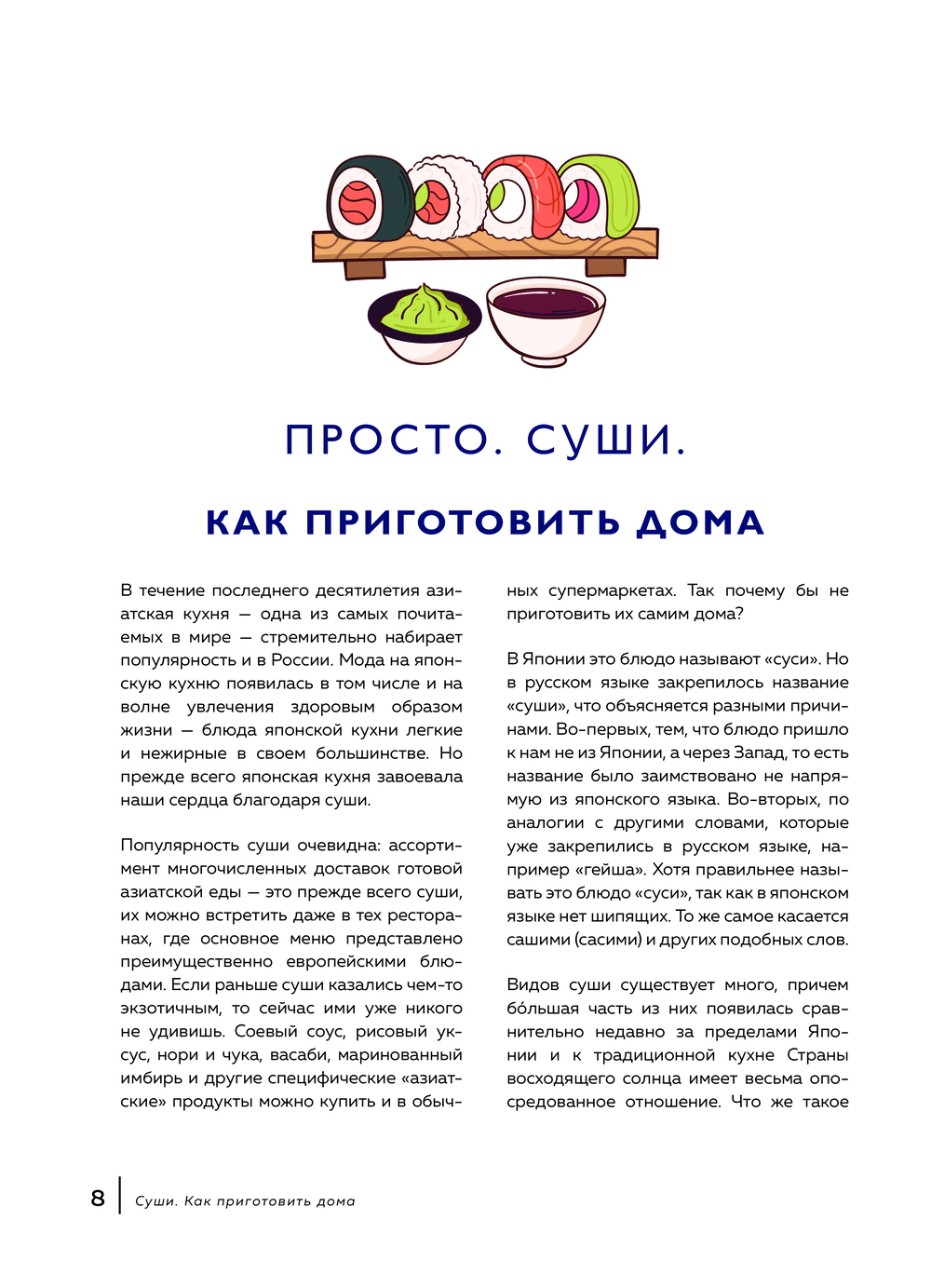 Суши и роллы давно стали не просто блюдами японской кухни, они принадлежат мировой кухне и являются любимцами людей разных национальностей. Каждый из нас хотя бы раз в жизни пробовал их в кафе или ресторане. Вариантов приготовления роллов и суши огромное количество: от обычных с лососем или креветками до сладких в качестве десерта. Благодаря этой книге вы прикоснетесь к японской культуре приготовления полезной еды и научитесь готовить эти изысканные изделия в домашних условиях. Попробуйте в новом прочтении суши с соусом "цезарь" или классические роллы с красной рыбой, угрем или морепродуктами!