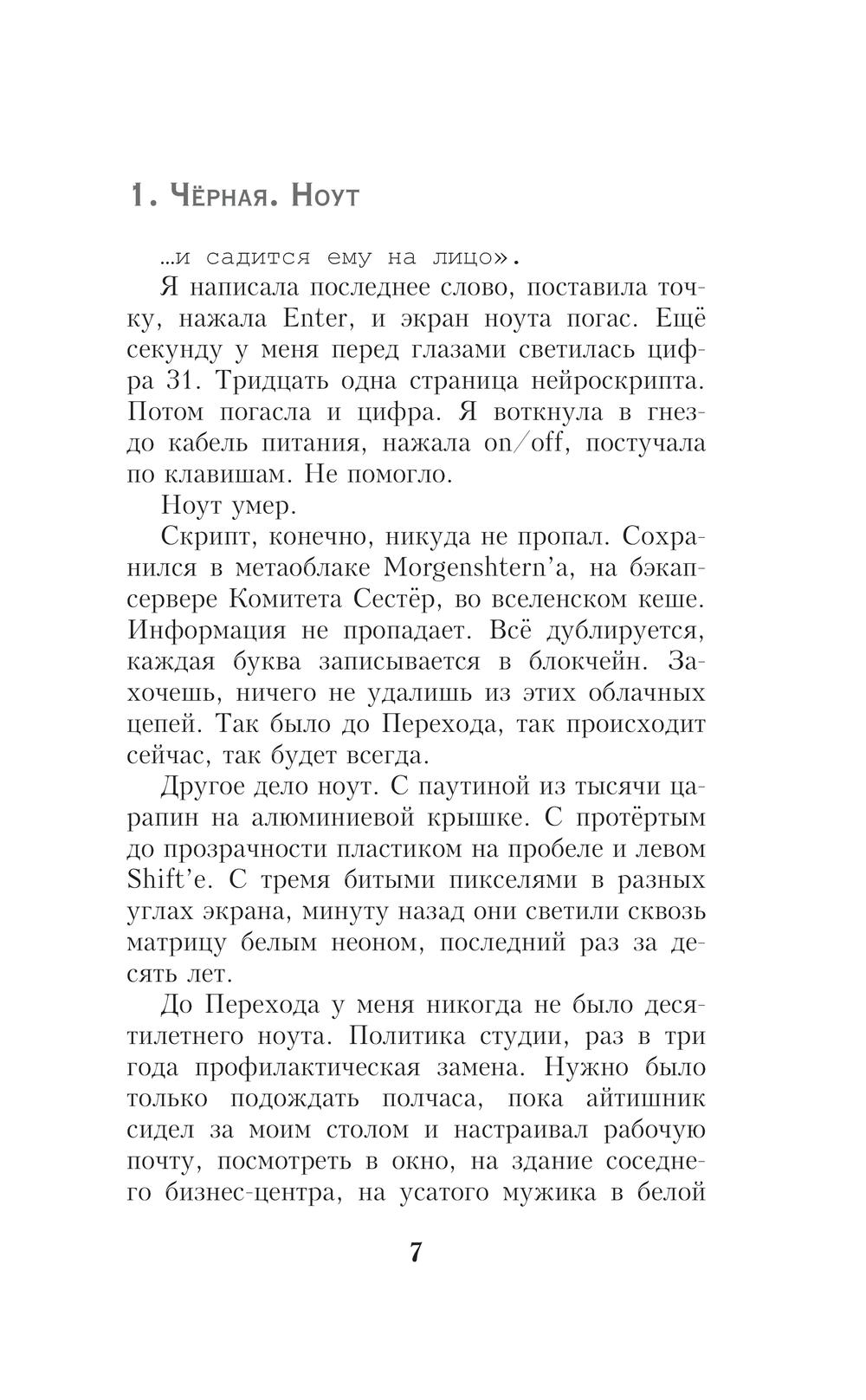 Альтернативное будущее. После Перехода мир живёт под контролем всевидящих камер Комитета Сестёр. Настоящие женщины, мужчины – всё это осталось в прошлом, теперь близкие контакты разрешены только в нейросети, где каждый может получить партнёра на любой вкус и воплотить любые желания. Одни приспособились к жизни в этой тотальной иллюзии, другие охотятся за нелегальными удовольствиями. А кто-то ищет в виртуальном пространстве дорогу к подлинной реальности – и однажды находит.