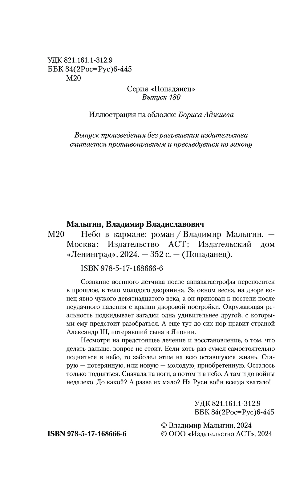 Сознание военного летчика после авиакатастрофы переносится в прошлое, в тело молодого дворянина. За окном весна, на дворе конец явно чужого девятнадцатого века, а он прикован к постели после неудачного падения с крыши дворовой постройки. Окружающая реальность подкидывает загадки одна удивительнее другой, с которыми ему предстоит разобраться. А еще тут до сих пор правит страной Александр III, потерявший сына в Японии. Несмотря на предстоящее лечение и восстановление, о том, что делать дальше, вопрос не стоит. Если хоть раз сумел самостоятельно подняться в небо, то заболел этим на всю оставшуюся жизнь. Старую – потерянную, или новую – молодую, приобретенную. Осталось только подняться. Сначала на ноги, а потом и в небо. А там и до войны недалеко. До какой? А разве их мало? На Руси войн всегда хватало!