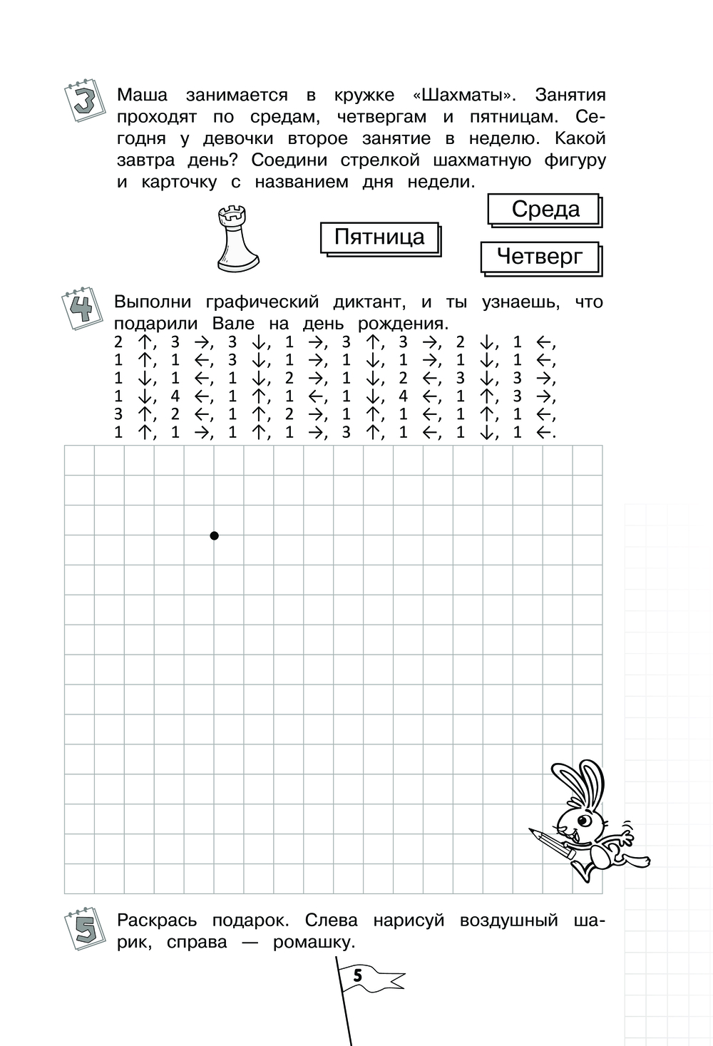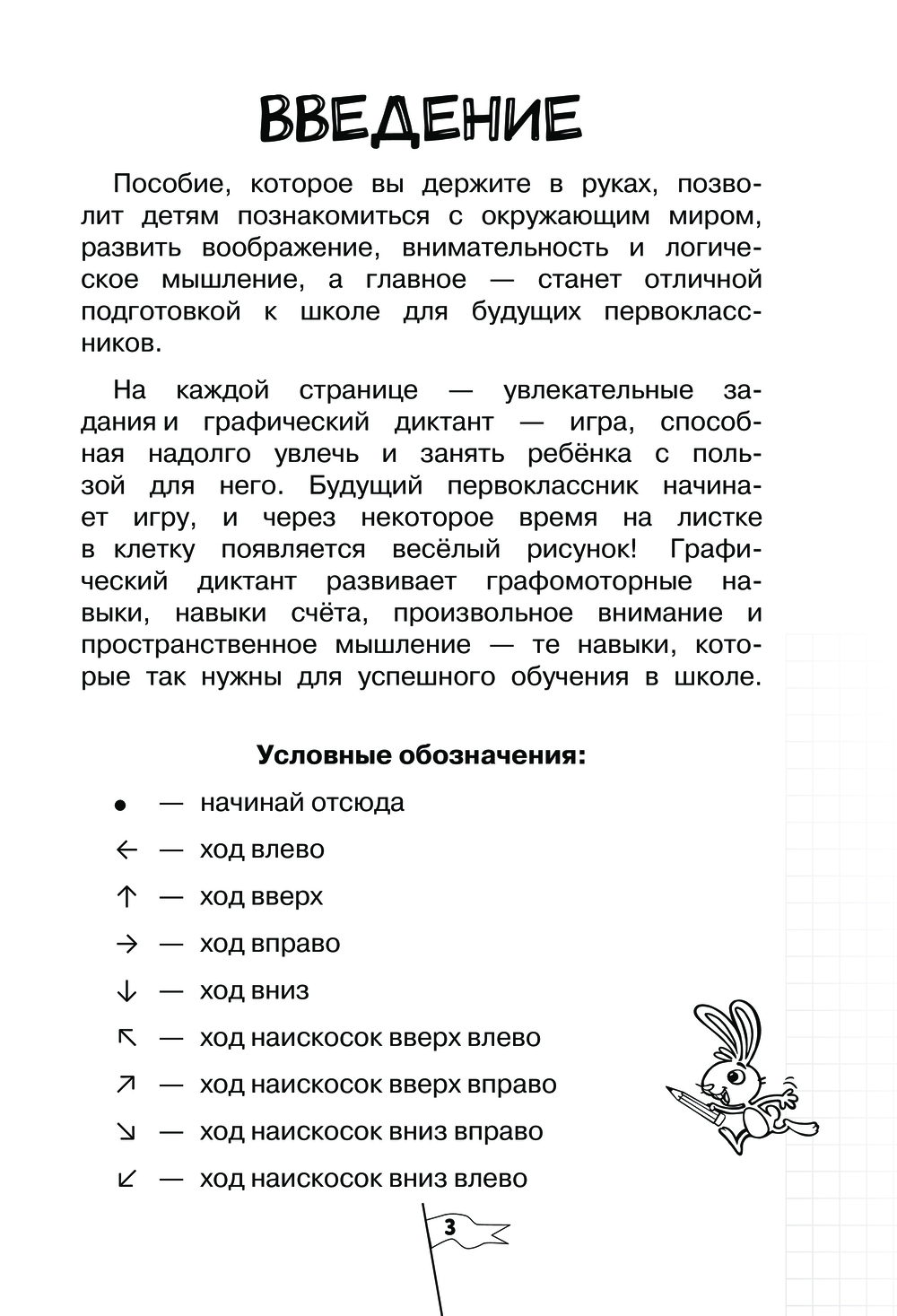 Обучение может быть не только полезным, но и увлекательным. В дошкольном возрасте ведущей деятельностью является не учёба, а игра, и поэтому все упражнения даны в игровой форме. Выполняя задания тренажёра, ребёнок успешно подготовится к школе, расширит свои знания о мире вокруг, а также получит базовые навыки и умения, необходимые для учёбы в 1 классе. Основной акцент делается на графические диктанты, которые помогут дошкольнику развить мелкую моторику, внимание, концентрацию, пространственное мышление. Кроме того, будущий первоклассник научится точности и аккуратности.
