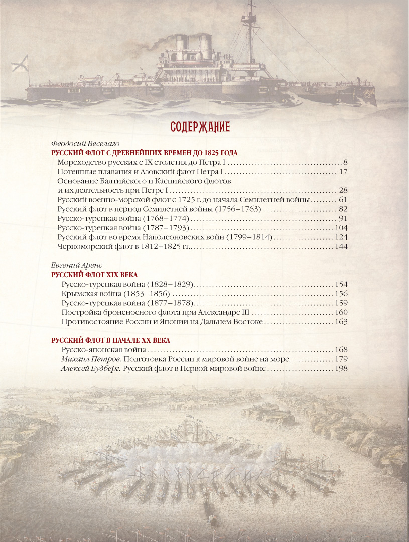 Историю развития российского флота с древнейших времен до 1917 года рассказывают нам труды выдающихся военных историков: Феодосия Веселаго, Евгения Аренса, Михаила Петрова, Алексея Будберга.