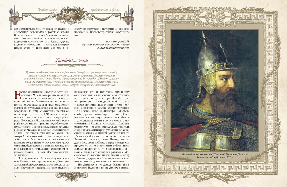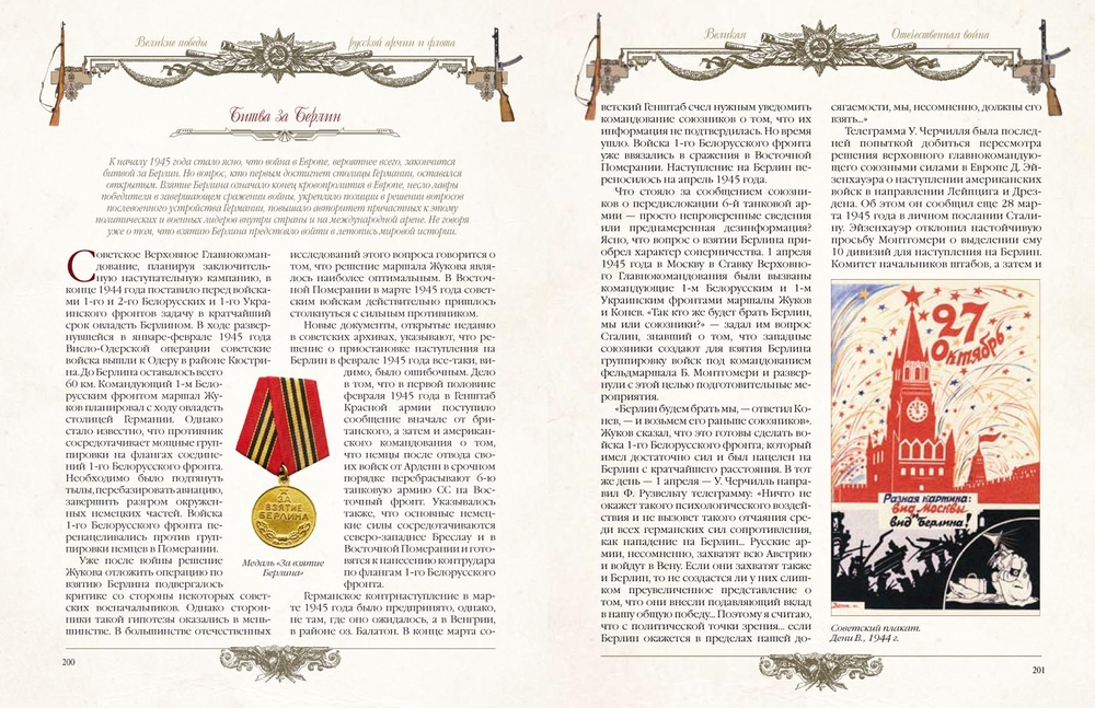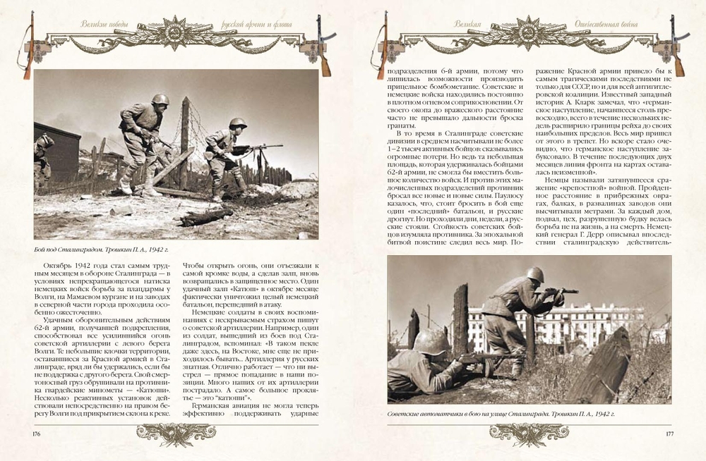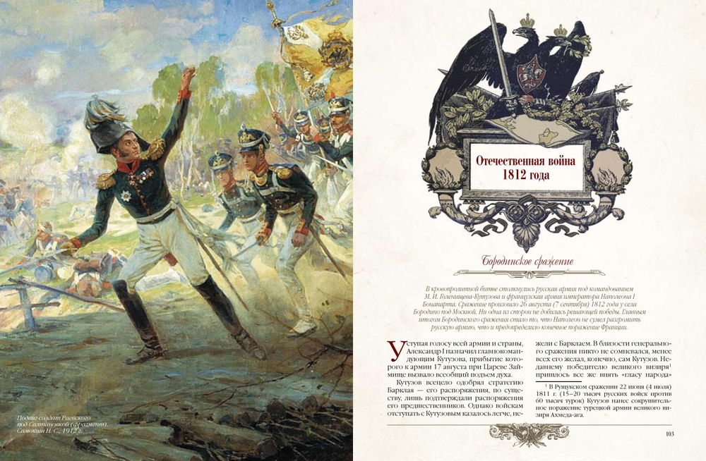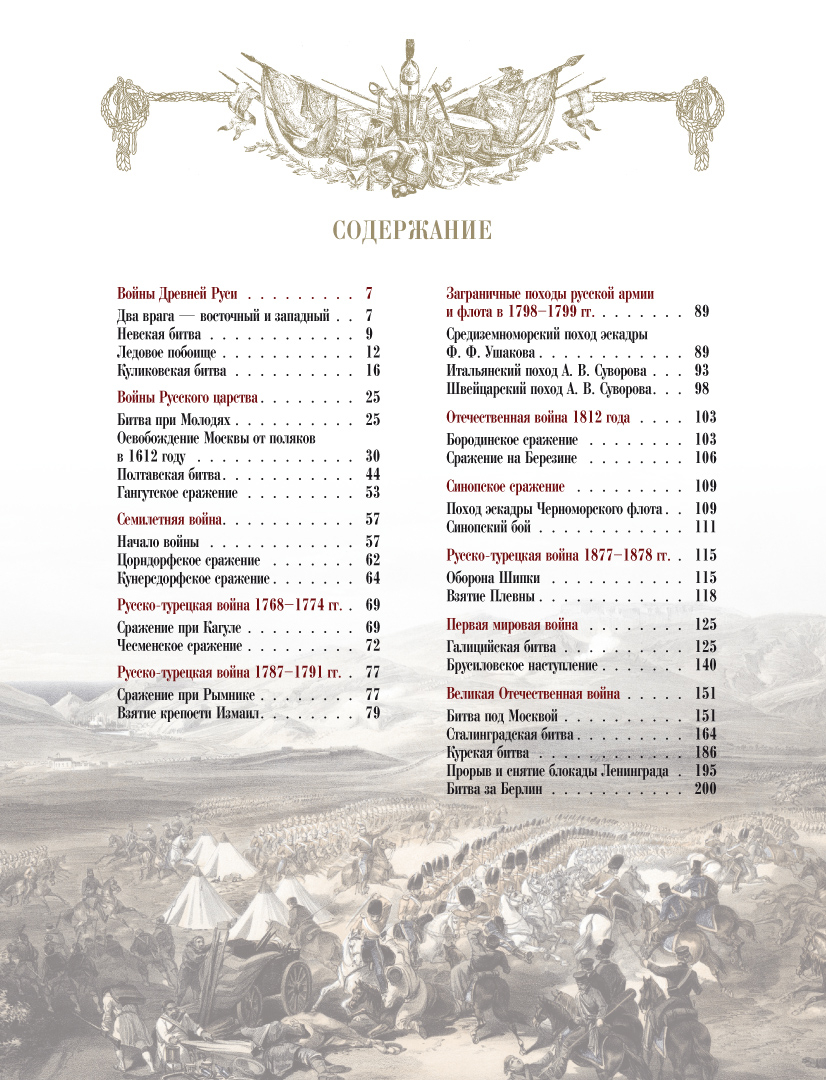 Интересен и иллюстративный ряд книги, состоящий из шедевров русской и европейской батальной живописи, портретов, документальных фотографий, плакатов из архивов и музейных экспозиций.