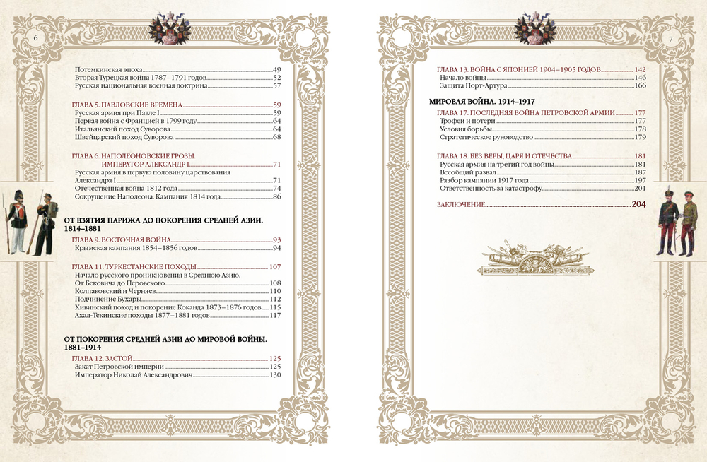 Самые важные главы этого классического труда впервые выпущены в виде единого тома с уникальным изобразительным рядом из полноцветных иллюстраций. Издание адресовано всем, кто интересуется историей русской армии, и станет прекрасным подарком военным и будущим защитникам Отечества — суворовцам, курсантам военных училищ, старшеклассникам.