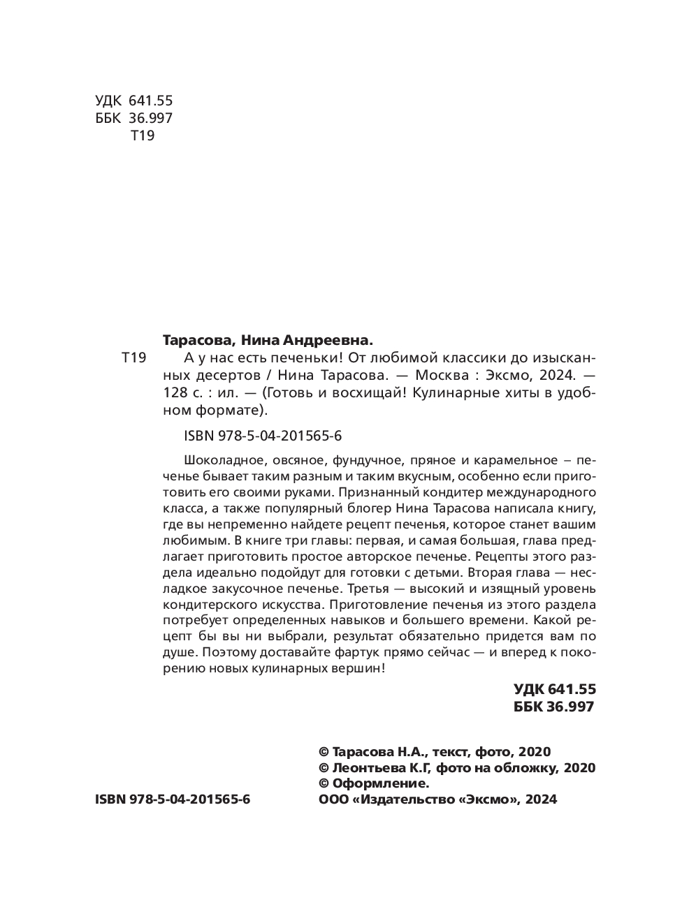 Шоколадное, овсяное, фундучное, пряное и карамельное – печенье бывает таким разным, и таким вкусным, особенно если приготовить его своими руками. Признанный кондитер международного класса, а также популярный блогер Нина Тарасова написала книгу, где вы непременно найдете рецепт печенья, которое станет вашим любимым.