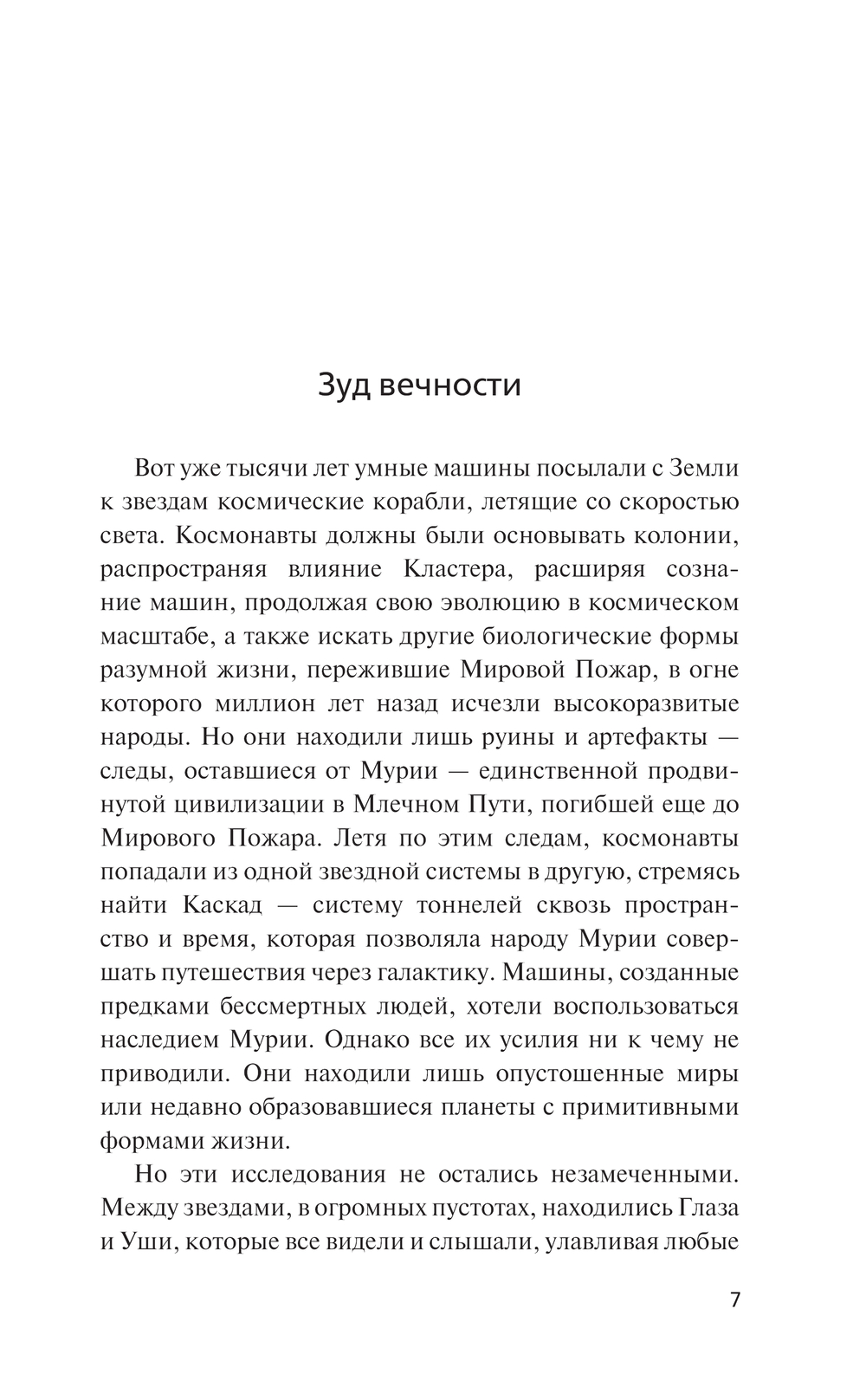 Машины же тем временем отправляют исследовательские зонды в попытках найти следы древней инопланетной цивилизации, которая сгинула много миллионов лет назад, но, судя по скудным сведениям, оставила после себя Каскад – систему, дающую возможность моментально перемещаться в любую точку галактики. В попытках найти его искусственный интеллект сталкивается с чем-то чудовищным, странным объектом, из-за которого давным-давно погибли все разумные народы Млечного Пути. И теперь Земле, и всем ее обитателям грозит смертельная опасность.