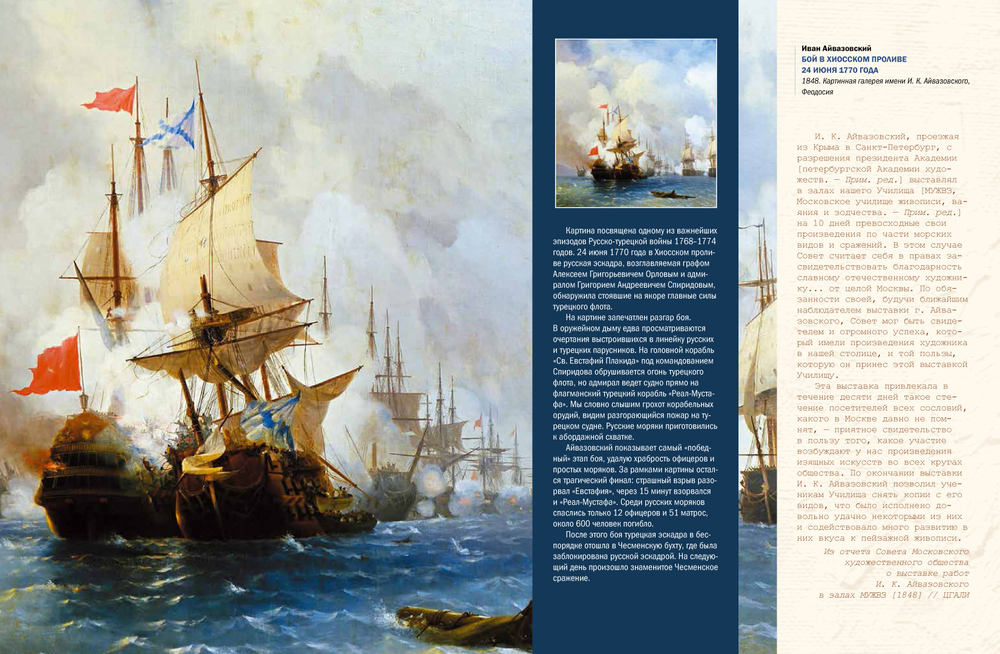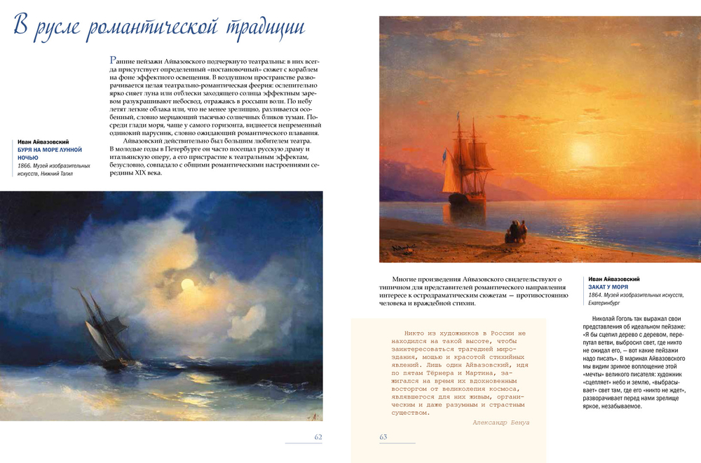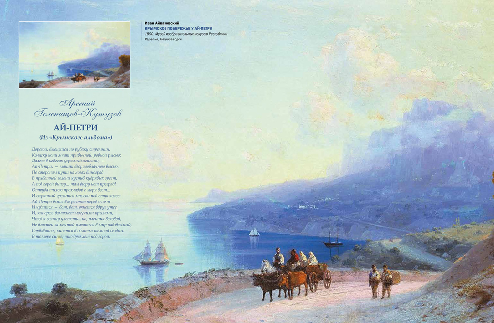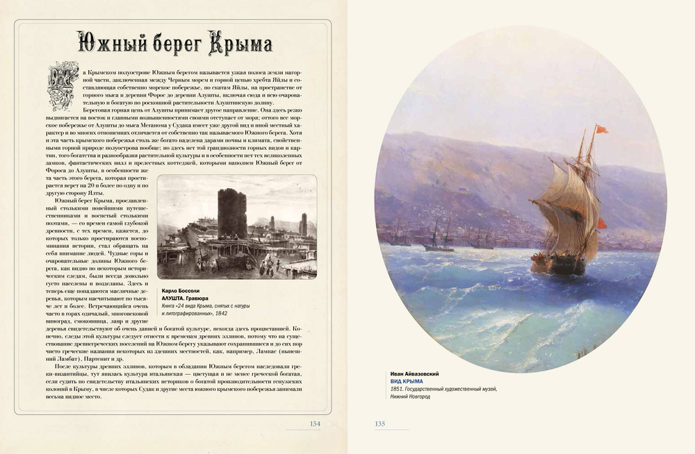 Отдельная глава книги посвящена любимому месту Айвазовского —Крыму, где художник прожил долгую плодотворную жизнь и создал целую галерею картин с восхитительными крымскими видами.