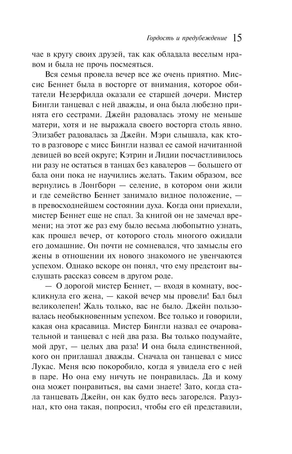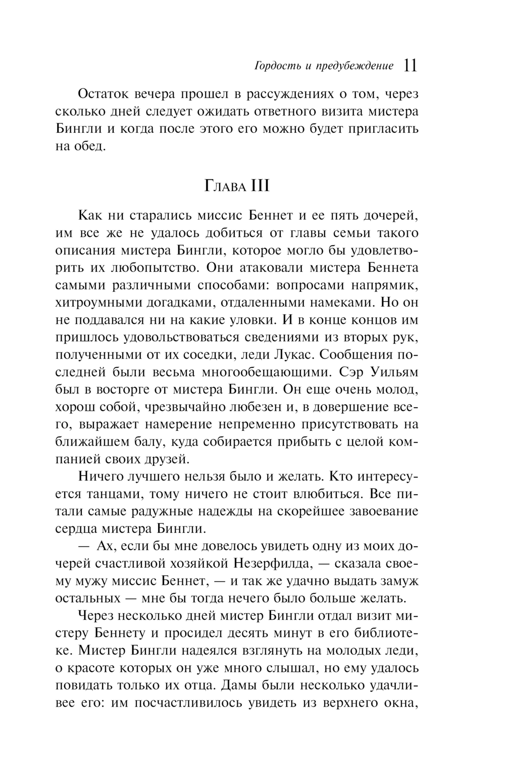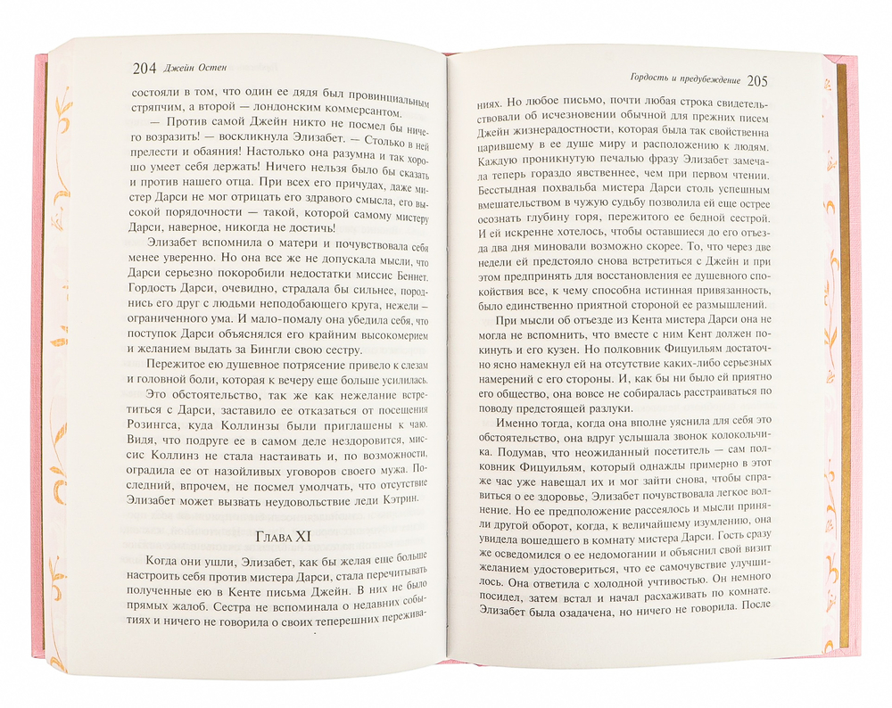 На фоне быта английского провинциального общества, нравы которого автор описывает с тонкой иронией и удивительной наблюдательностью, разворачивается великолепный спор между гордым мистером Дарси и предвзятой Элизабет Беннет. Благодаря изящному слогу автора страница за страницей в главной героине расцветает чувственная и невинная любовь, не знающая никаких преград.