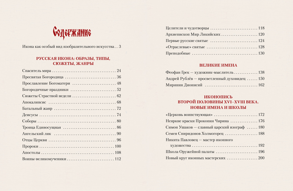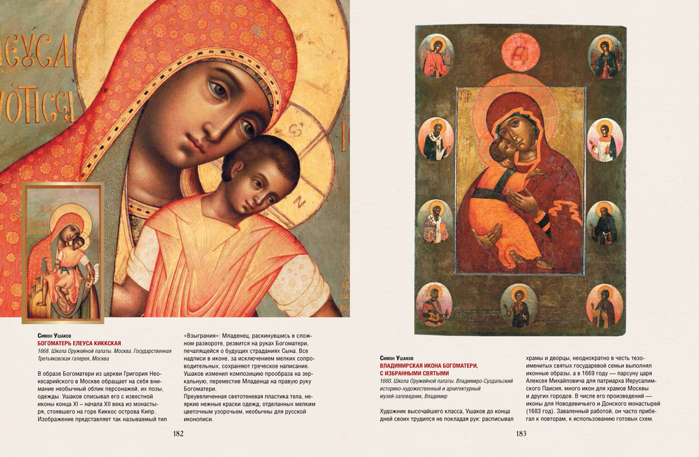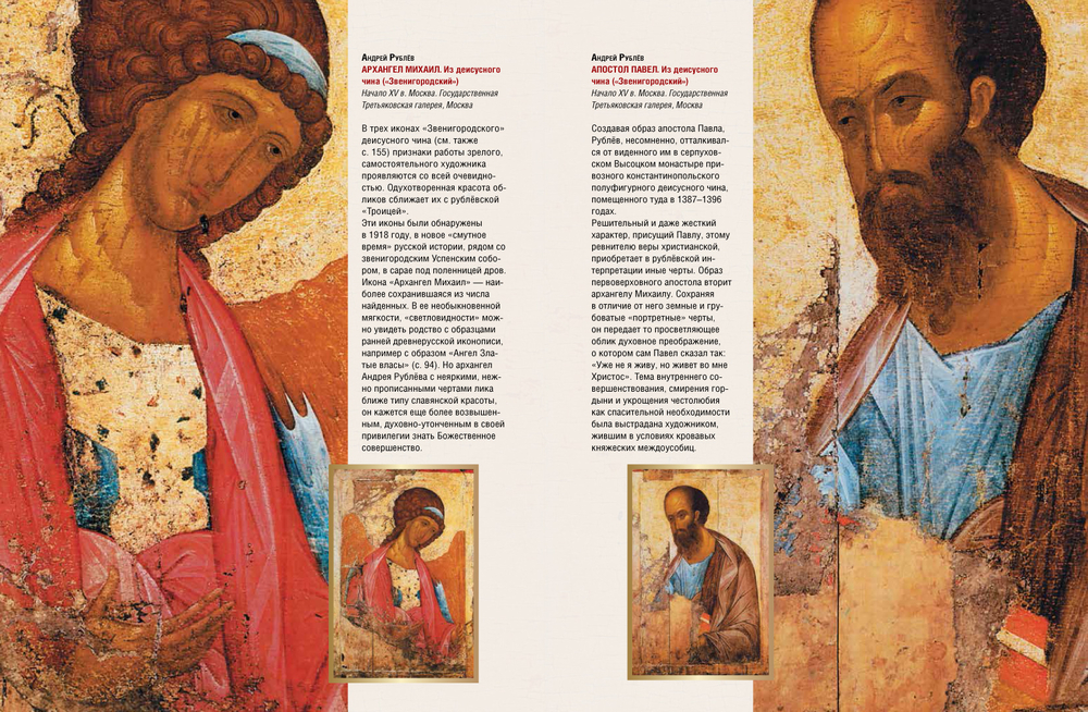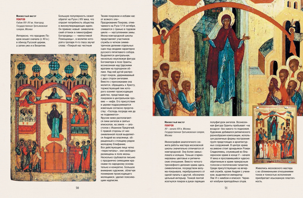 Также вы узнаете о самых известных иконописных традициях земли Русской, воплощенных в тверской, новгородской, псковской, московской иконописных школах, и конечно о знаменитых иконах, созданных как мастерами, чьи имена до нас не дошли, так и прославленными иконописцами Феофаном Греком, Андреем Рублёвым, Дионисием, Симоном Ушаковым, Прокопием Чириным.