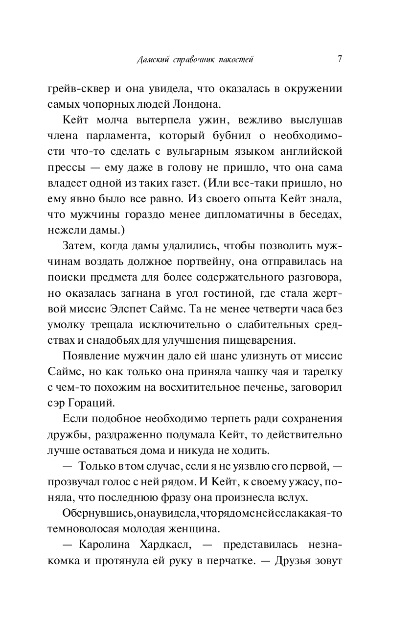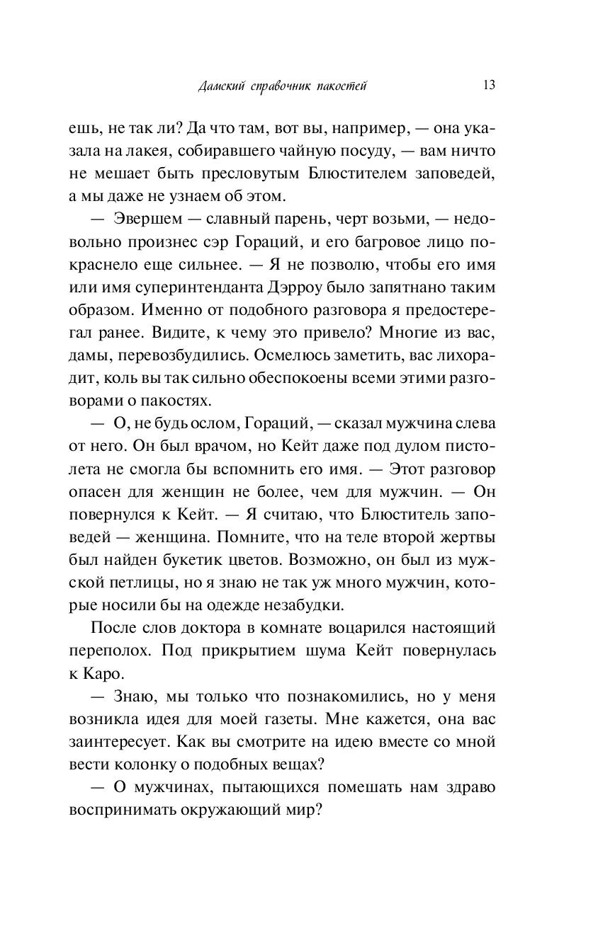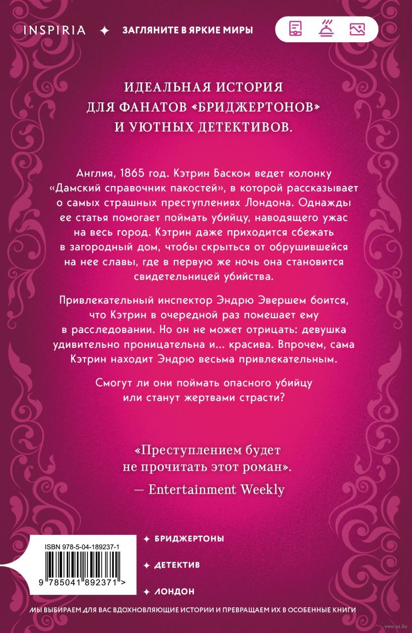 Англия, 1865 год. Кэтрин Баском ведет колонку "Дамский справочник пакостей", в которой рассказывает о самых страшных преступлениях Лондона. Однажды ее статья помогает поймать убийцу, наводящего ужас на весь город. Кэтрин даже приходится сбежать в загородный дом, чтобы скрыться от обрушившейся на нее славы, где в первую же ночь она становится свидетельницей убийства.