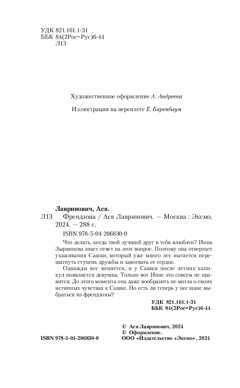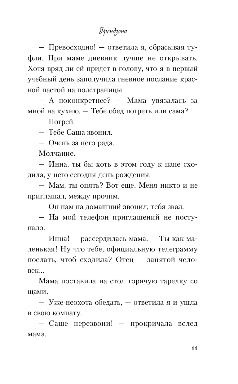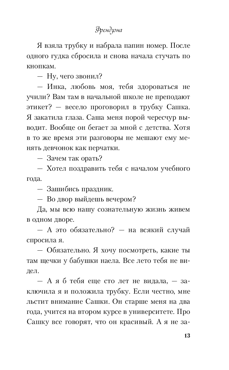 Однажды все меняется, и у Сашки после летних каникул появляется девушка. Только вот Инне это совсем не нравится. До этого момента она даже вообразить не могла о своих истинных чувствах к Сашке. Но есть ли теперь у нее шанс выбраться из френдзоны?