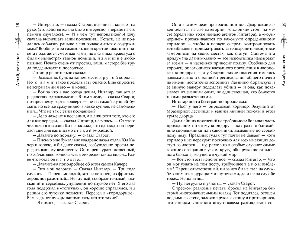 Вертикальная вода смыла Токеранг, как будто его и не было. И настала в империи короля королей Сварога благодать да тишь. Пришло время продолжить путешествия по тихим Заводям. А в тихих заводях, как известно, если не черти водятся, то может скрыться Безумный Зодчий — то самое четвертое Воплощение?.. Поскрипывает алый, алый снег под ногами видавшей многое Странной Компании. Но каким будет путь назад? Вновь по рубиновой ковровой дорожке со щитом, или на щите?..