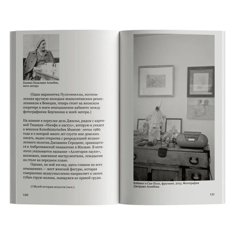Это поэтическое эссе одной из главных фигур современной интеллектуальной мысли Джорджо Агамбена (род. 1942). Демонстрируя своему читателю кабинеты, в которых ему приходилось работать, итальянский философ пытается выстроить свой автопортрет через находившиеся там вещи. Для Агамбена рассуждать о себе оказывается возможным только говоря о других: поэтах, философах, художниках, друзьях, которые создали его воспоминания и вдохновили его на письмо. Поэтому автопортрет философа оказывается неразрывно связан с Мартином Хайдеггером и его семинарами в Ле Торе, книгами Ханны Арендт, итальянской интеллигенцией и философскими размышлениями о природе памяти, любви и письме.