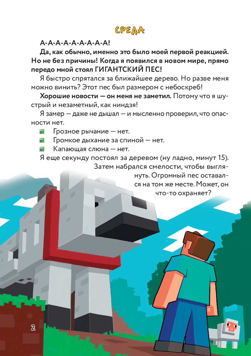 Как вы уже наверняка догадались, Стив попал в очередной мир в "Майнкрафте"! На этот раз его ждут огромный пес (такой ли уж пес, на самом деле?), захватывающее приключение в пещере, первое сражение с монстрами. А ещё первый настоящий друг! Ох, Стиву предстоят жаркие деньки!
